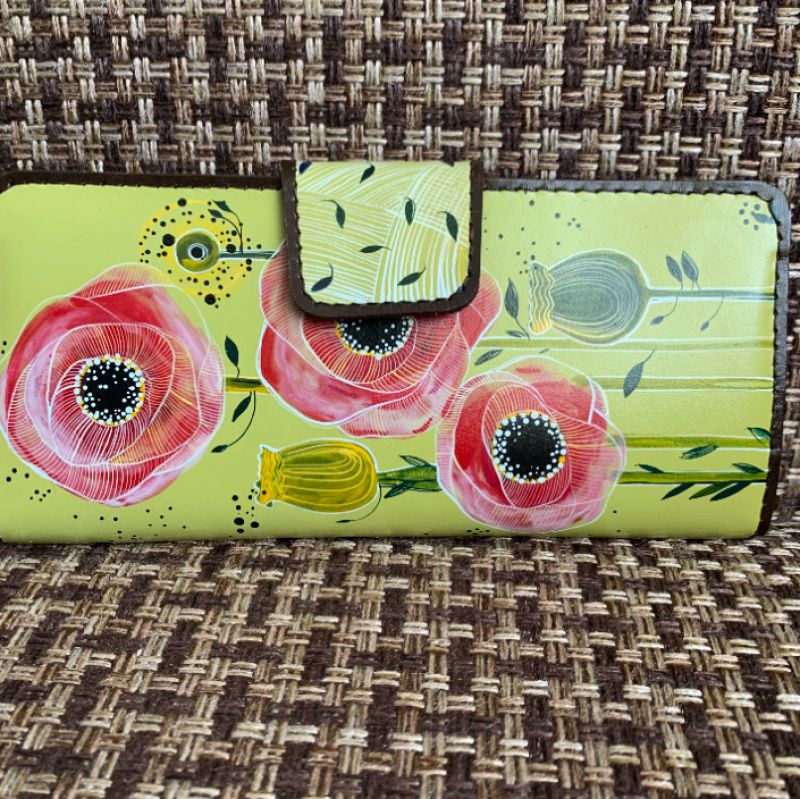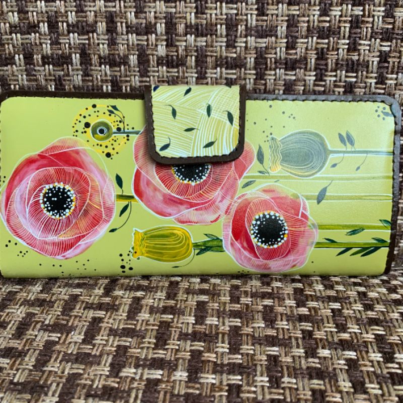 Кошелек большой из натуральной кожи + авторская роспись; Покрыт лаком, поэтому особого ухода не требует.