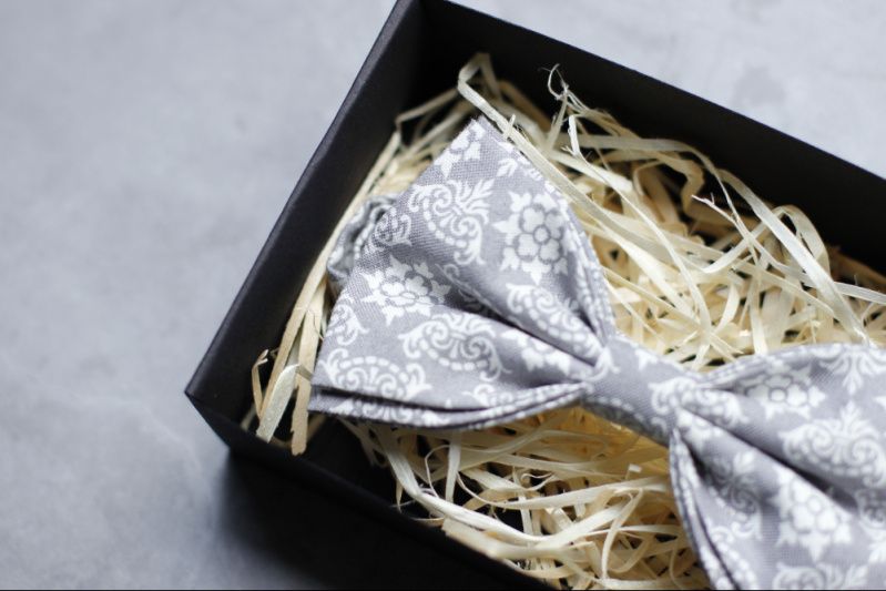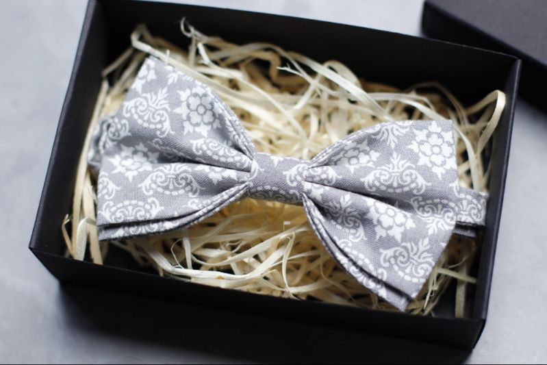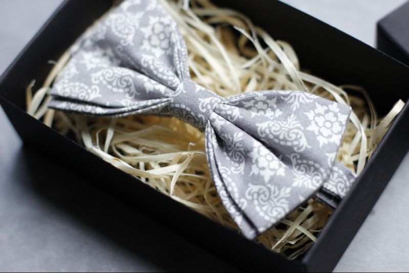 Галстук-бабочка серая с узором на свадьбу
