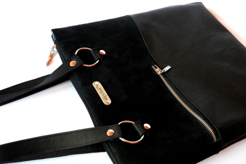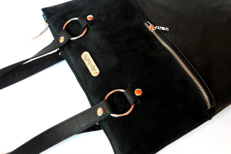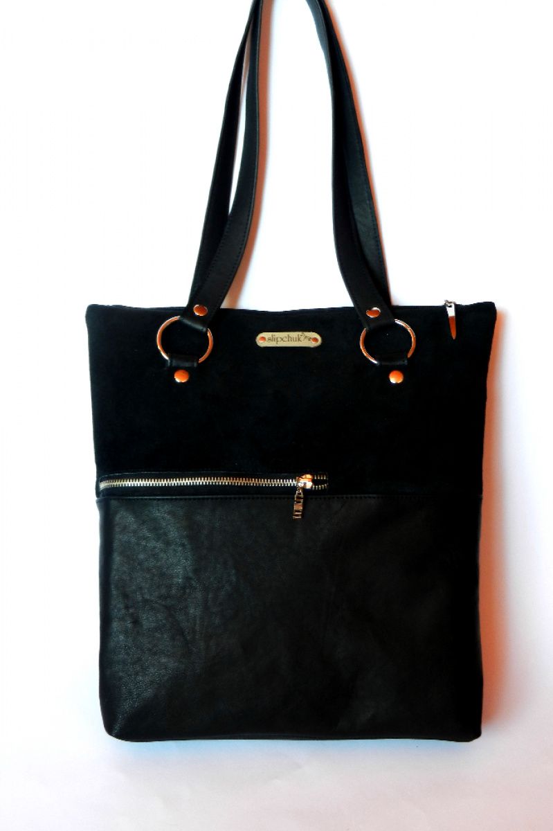 Отличная универсальная сумка. Нижняя часть сумки сшита из кожи, а для верхней части использована замша. Фурнитура – серебро. Застёжка – молния. Ручки достаточной длины для ношения сумки в руке, на локте и на плече.
