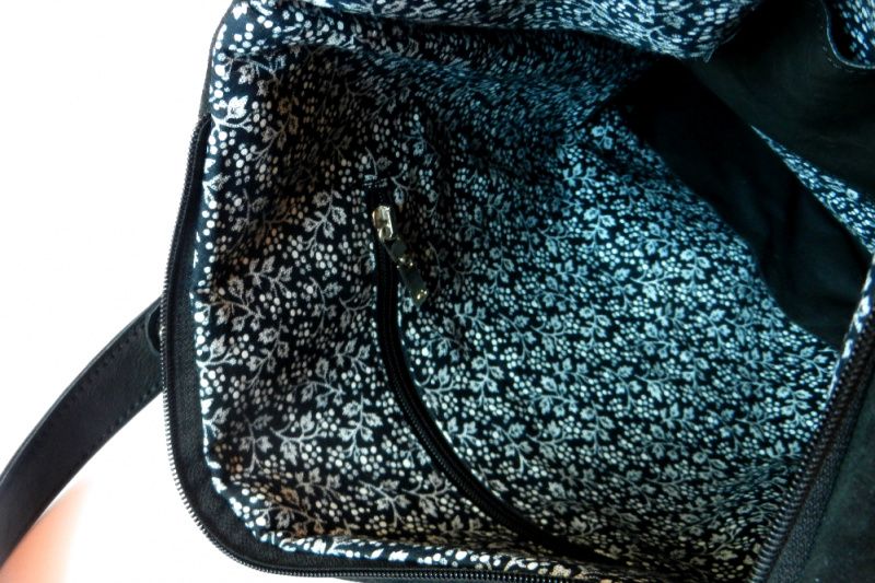 Внутри хлопковый подклад. Два кармана: один на молнии, другой открытый.