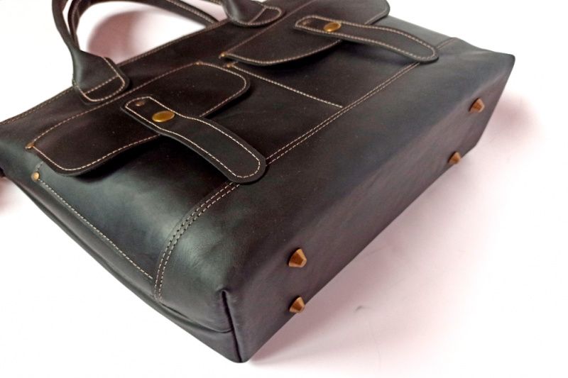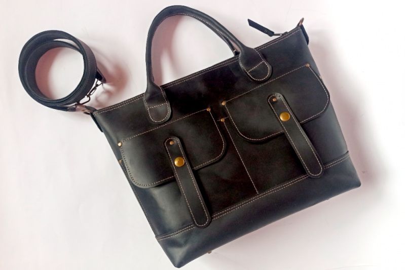 Сумка сшита из кожи крейзи. Эту кожу я могу восхвалять бесконечно – выглядит очень самобытно, а естественные трещинки-царапины придают ей еще больше шарма... Впоследствии кожа становится еще лучше. К тому же она очень износоустойчива. Сумка отлично держит форму. Застегивается на молнию. Эта модель немного шире – помещаются документы формата А4. Спереди два накладных кармана. Короткие ручки для ношения в руке и локте. И длинный пристегивающийся ремень для ношения на плече. Дно дополнительно укреплено. Сумка уверенно стоит на ножках. Внутри подкладка в тон. Есть карман на молнии. __________________ Можно заказать сумку в другом цвете, спрашивайте:)