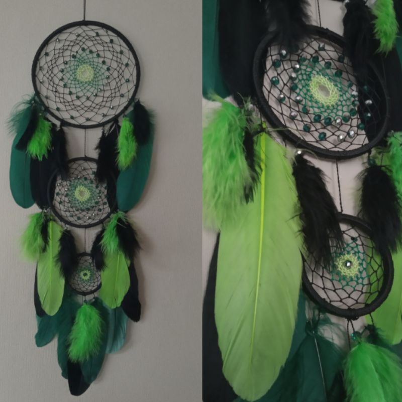 • Материалы: Перья натуральные окрашенные, шёлковые нити...