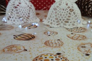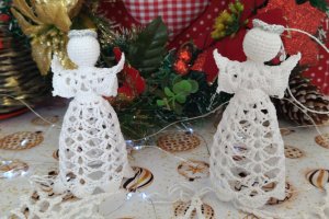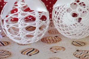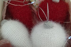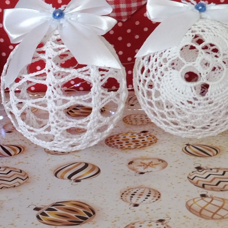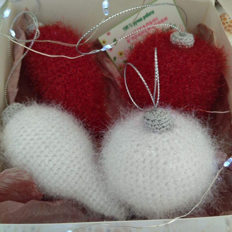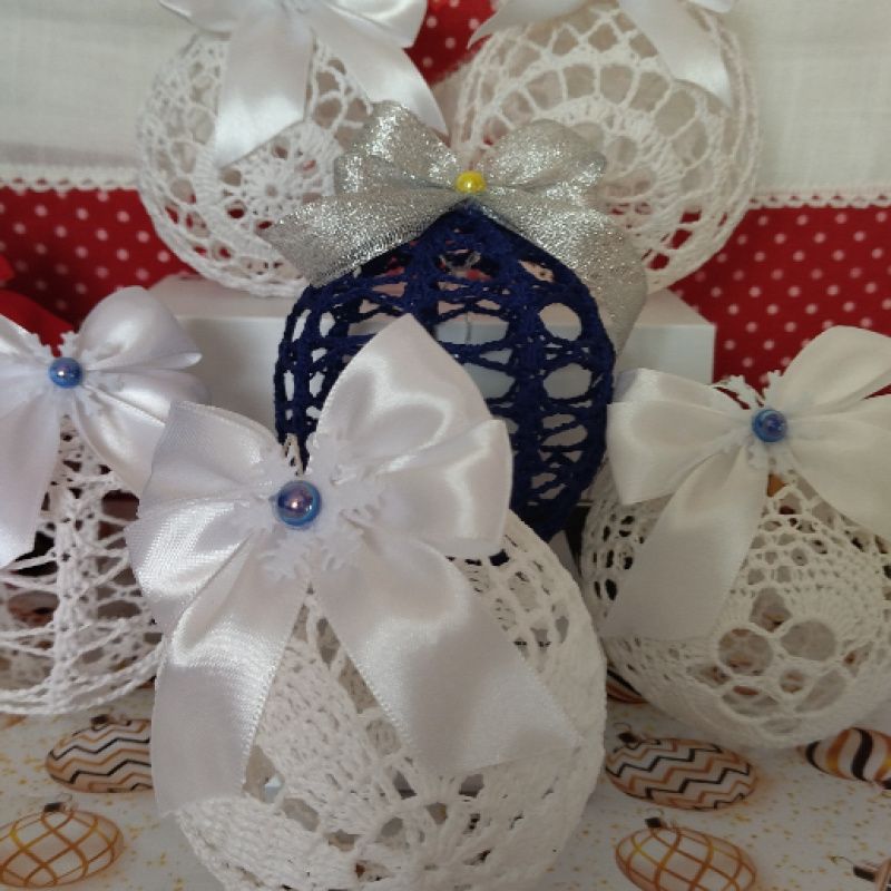 Вязаные крючком новогодние украшения. Пули вязаные из цветной нити накрахмаленные диаметром около 7-9 см – цена 50 грн, ангелики – цена 60грн. Коробочка с блестящими украшениями 4шт - цена 180 грн.