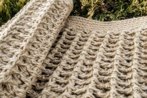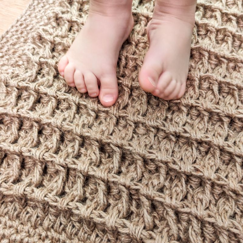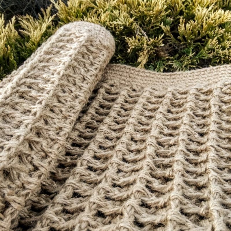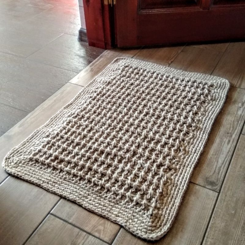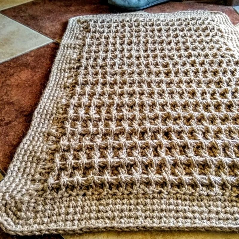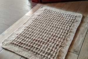Килимок в'язаний гачком із джуту. Завдяки маленькому розміру, може підійти для ванної кімнати, бути у ролі приліжкового килима та вхідного килимка.