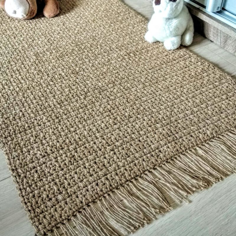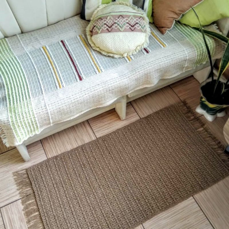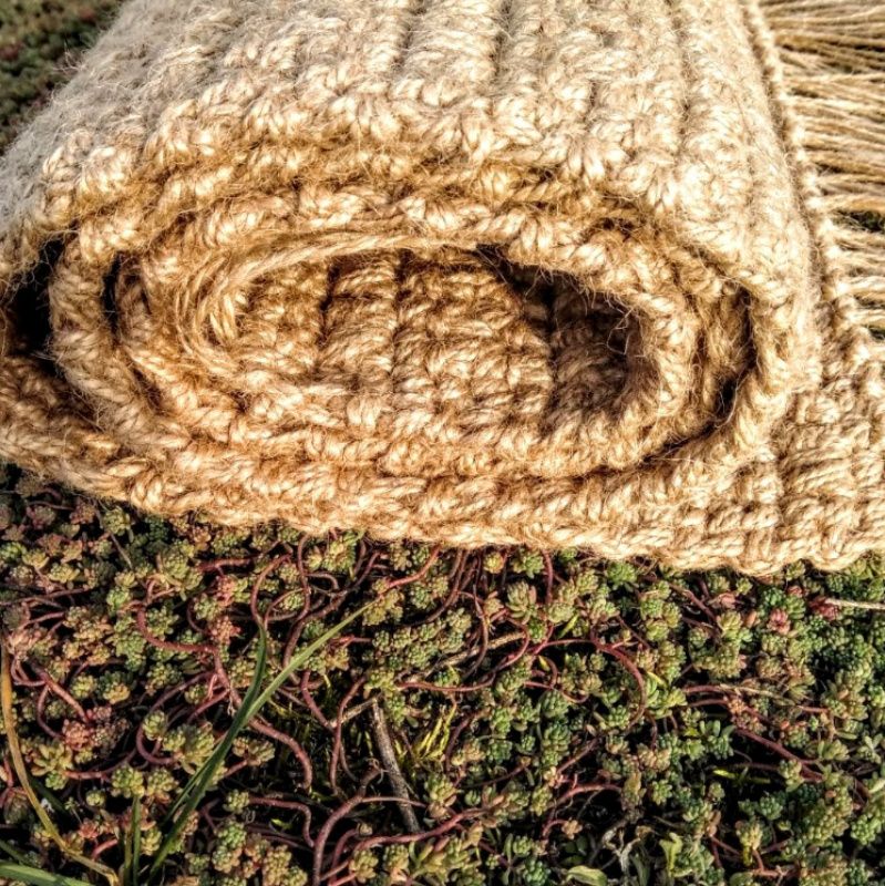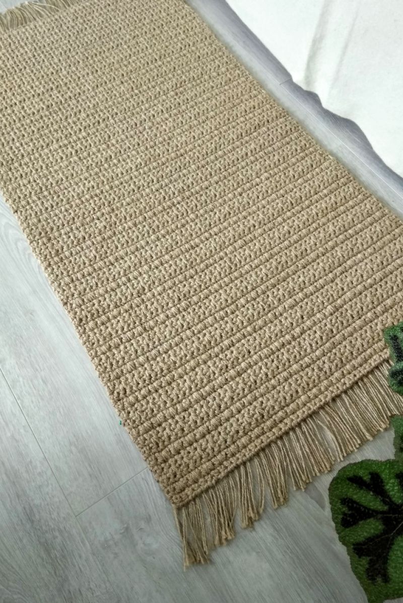 Натуральний килим із джуту в'язаний гачком. Натуральні килими популярні серед дизайнерів інтер'єру. Завдяки природному кольору, вироби з джуту ідеально впишуться в еко, бохо, кантрі, лофт і скандинавський стилі.