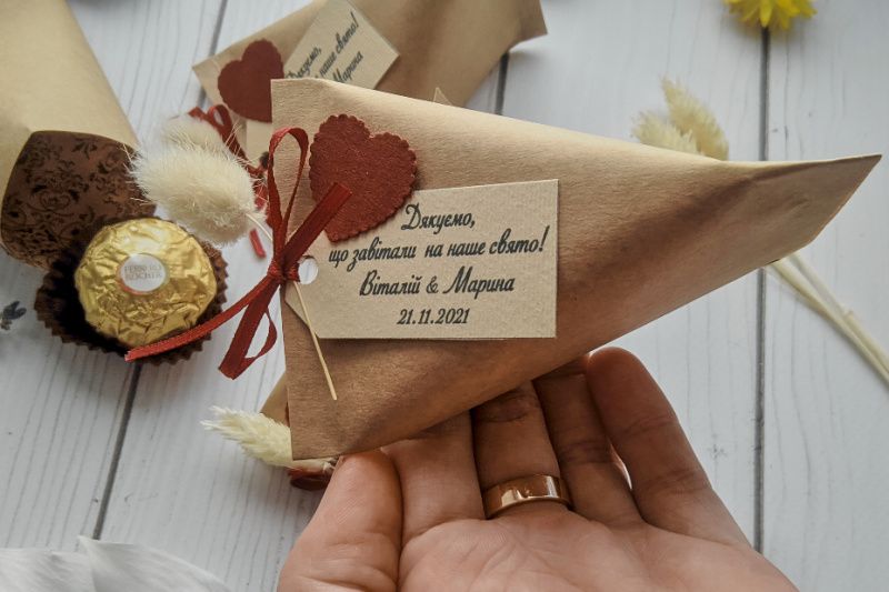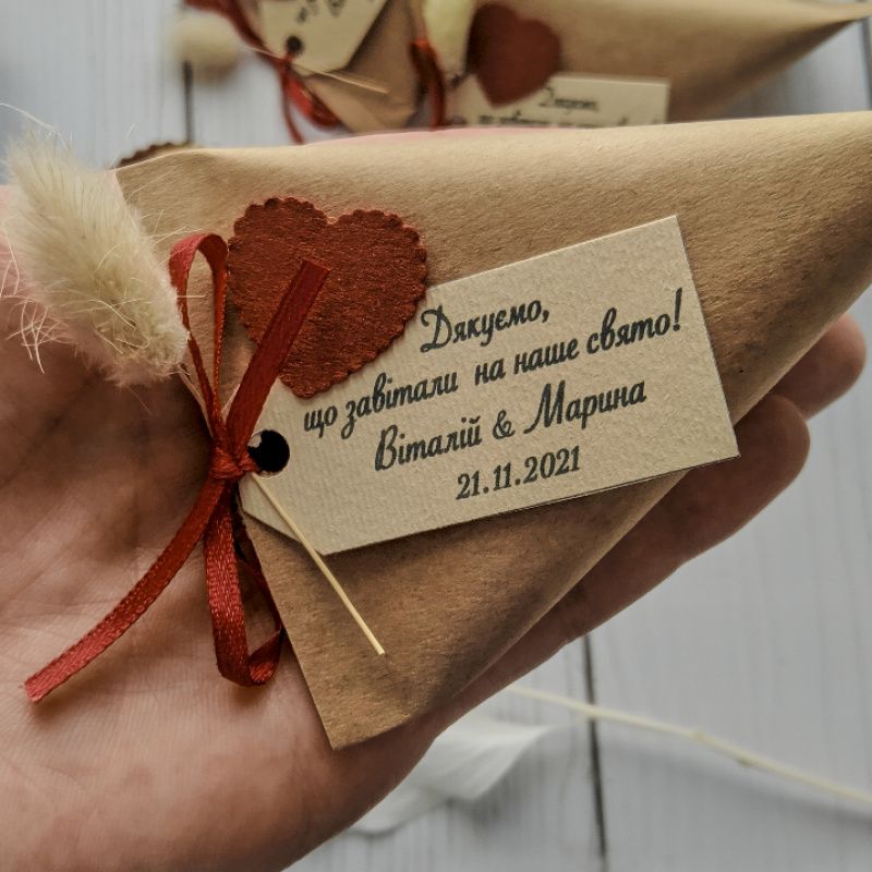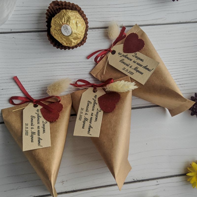 Ни для кого не секрет,что красивая свадьба устраивается, в первую очередь ради ярких эмоций ????. И конечно же бонбоньерка это не просто конфетка, а частичка эмоции, которую гости заберут с собой домой. И без сомнений бирочку точно оставят на память, при взгляде на которую будут мысленно возвращаться в тот прекрасный день. Не думаем, что сейчас нужно кого то убеждать, что оригинальные бонбоньерки это важная часть организации свадьбы - это уже очевидно)