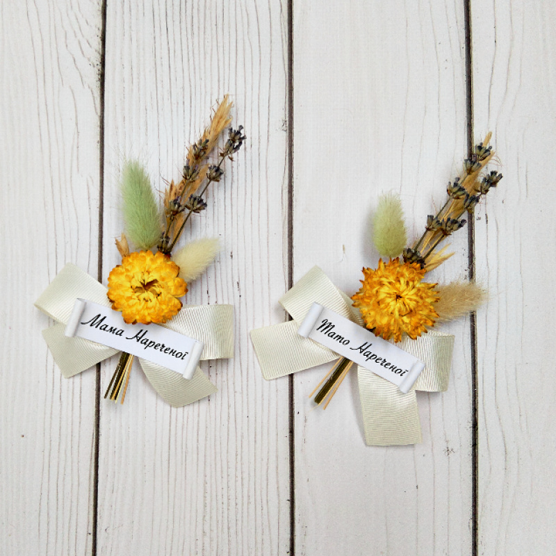 Бутоньерки сделаны из репсовых лент и сухоцветов (лаванда, гелихризум, лагурус ..).