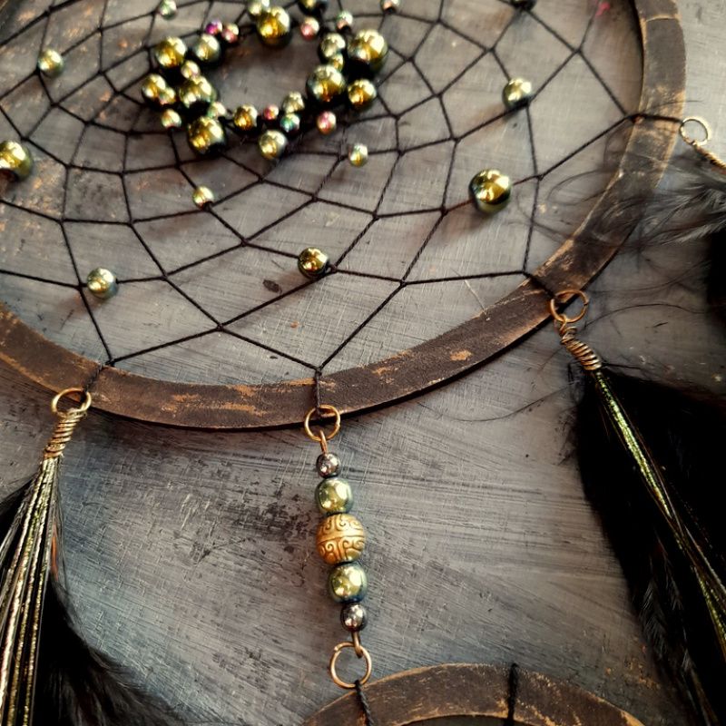 Ловец снов Вир звезд изготовлен на деревянной основе, украшенный бусинами гематита, перьями павлина, мараба и страуса. Ловец снов будет не только защищать но и украшать ваш дом, приносить уют и спокойствие. Прекрасный подарок на день рождения, новоселье, Новый Год, День Влюбленных и любое другое событие. Размер: Длина – 41 см., ширина – 20 см.