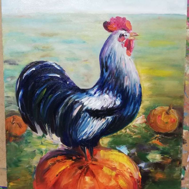 Картина "Петух, холст на подрамнике, масло, мастехин, 50х40 см