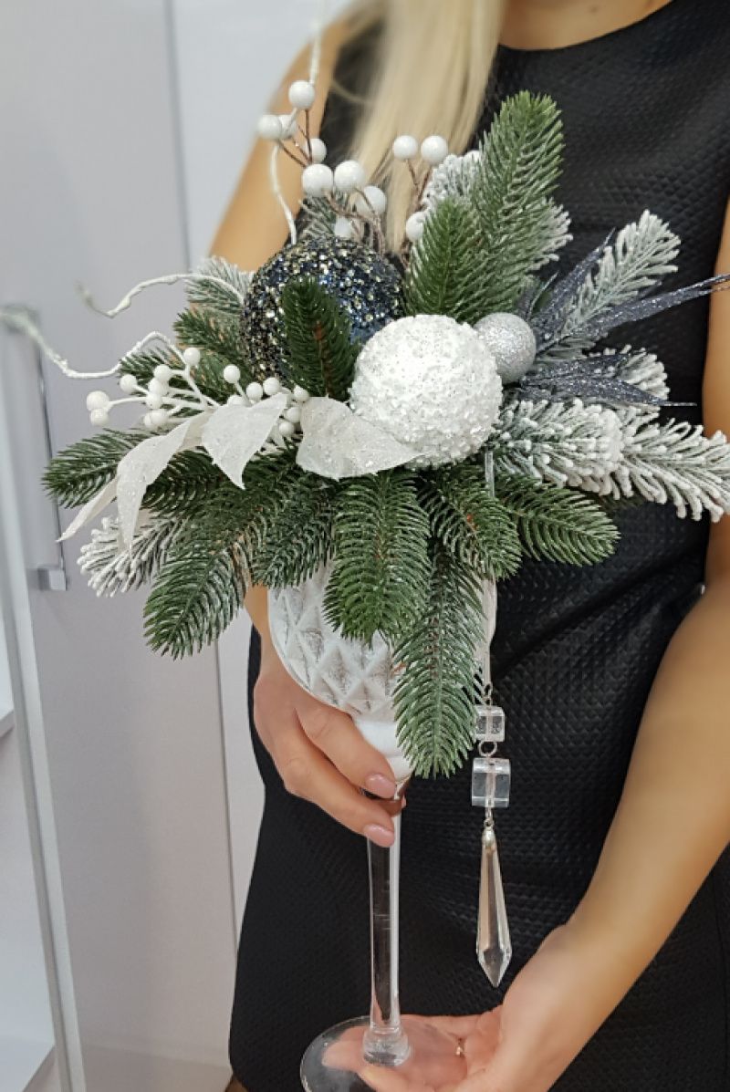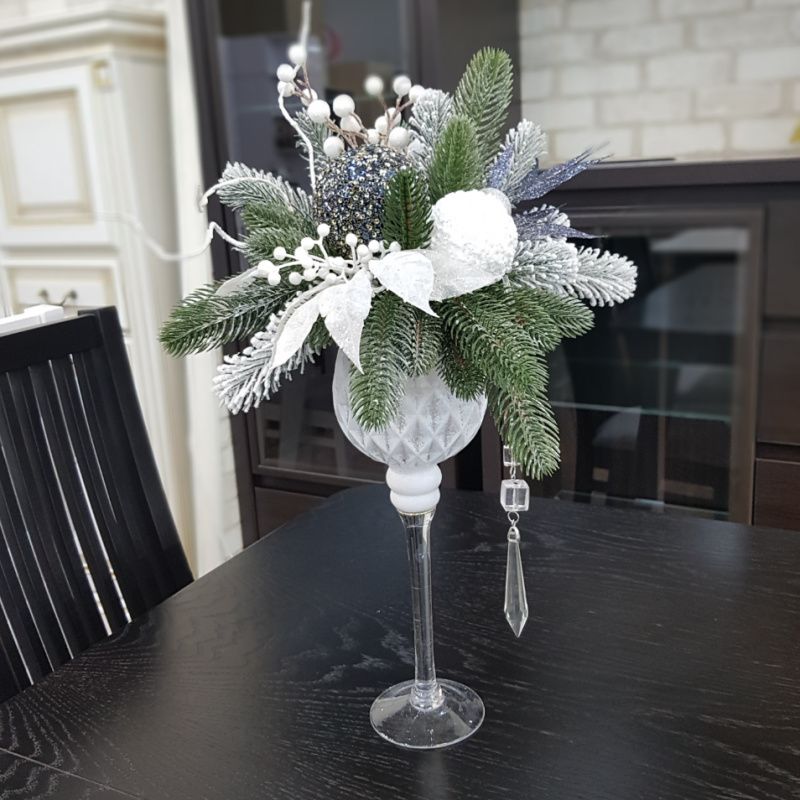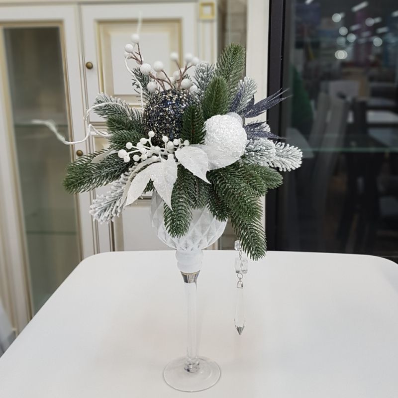 Новогодняя композиция в бокале. Выполнена из искусственной хвои, ёлочных игрушек. воздушная композиция добавит гармонии и уюта вашему интерьеру и несколько лет будет дарить тепло и радовать окружающих.