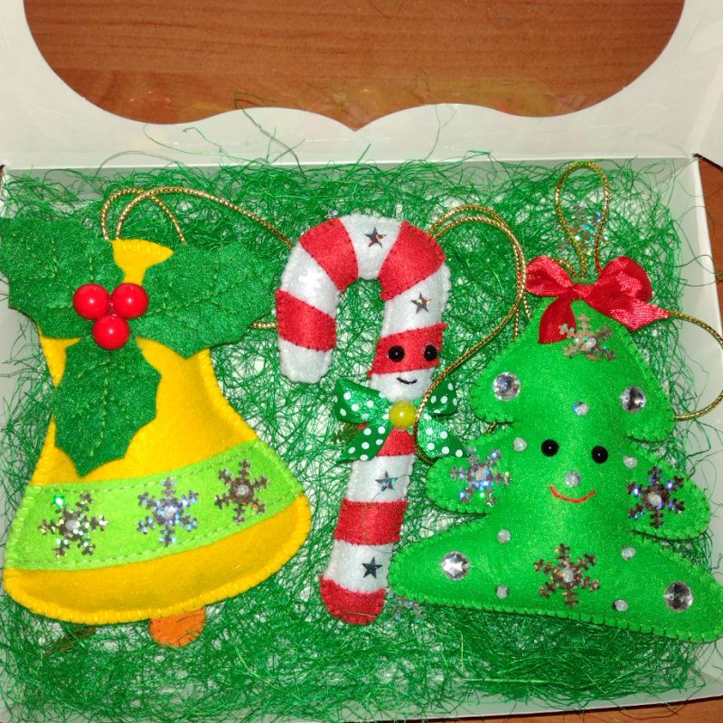 Игрушки на ёлку. Игрушки сделаны из фетра наполнитель холлофайбер. Ручная работа.