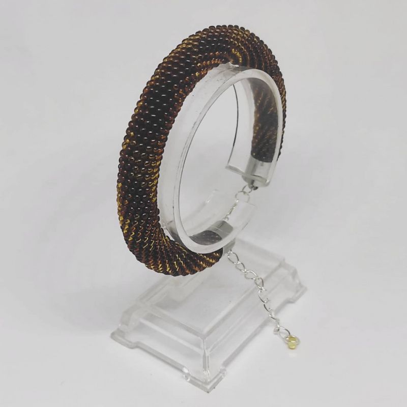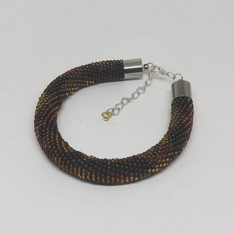 Браслет - жгут из бисера вязаная крючком ручной работы. Использованы нить 100% хлопок, фурнитура. Длина полотна жгута 16,5 см и ширина 1 см. Длина с замочком 21 см, и с цепочки 28 см. Возвращение товара только на следующий день после получения с подробным описанием причины возврата. Возвращение за счет покупателя.