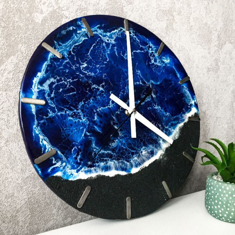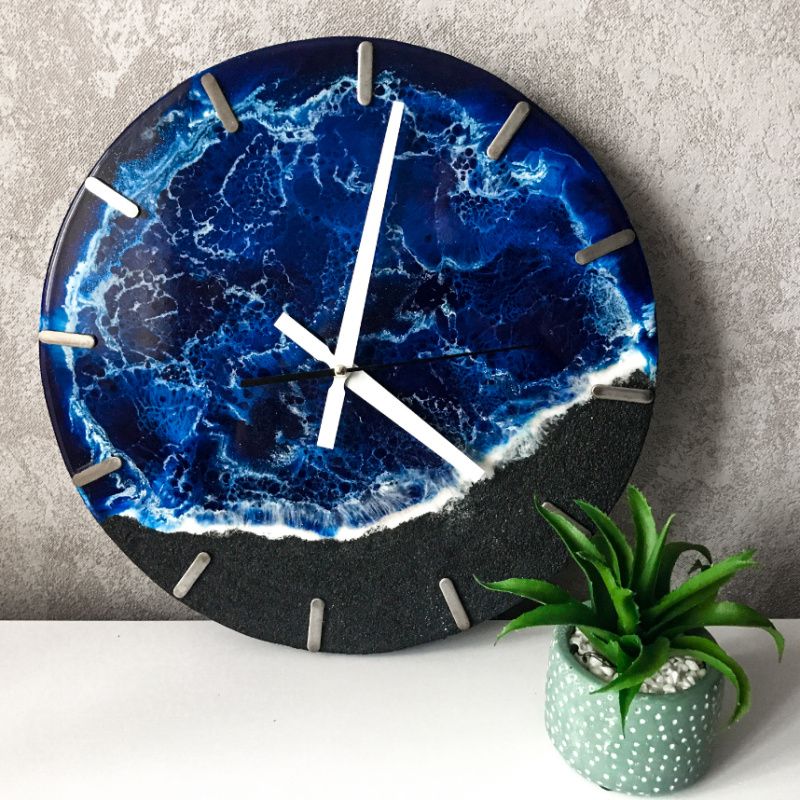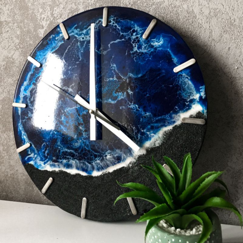 Силы природы давно будоражат человечество, особенно силу стихии. Нет ничего более завораживающего, чем ночной шторм в море. Мы уделили особое внимание основному цвету, особенно морским вонам, что в данном случае никак нельзя назвать обычной морской волной в понятии Rising Art. Благодаря качественным материалам удалось реализовать данный проект. Идеально подходит для людей, которые устали от стандартного низкокачественных изделий. Основной цвет темно-синий. Использован метод многослойной заливки, что обеспечивает дополнительный эффект глубины. Немного о циферблате, сделан вручную с нержавеющей стали, предварительно обработан. Часовой механизм з плавающим ходом стрелки. Изделие покрыто нетоксичным лаком, который обеспечивает защиту эпоксидной смолы от ультрафиолетовых лучей, также отдельно необходимо упоминуть специальный черный песок, благодаря которому создан берег. Отправка часов осуществляется в нестандартной коробке, с наполнителем идеален вариант, если вы покупаете часы на подарок. Забрали на почте – подарили. Теперь не нужно отдельно покупать подарок, потом стоять в очередях, для его упаковки! Можем изготовить на заказ любой цвет, форма, размеры.