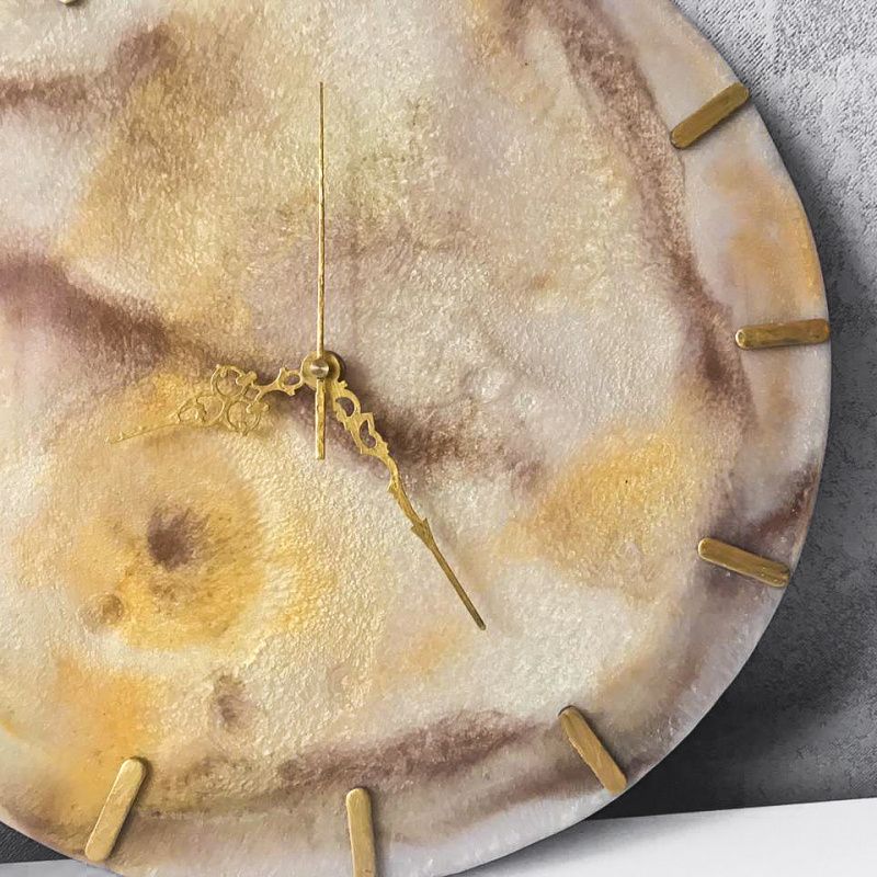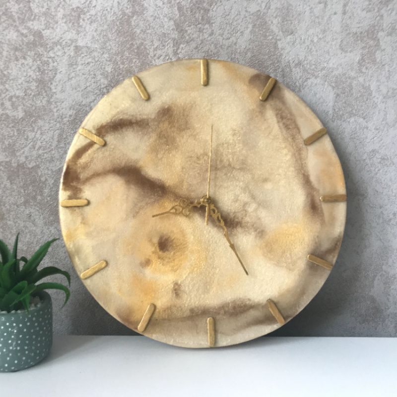 Мрамор интересная горная порода, которая символизирует статус и успех. Мы постарались максимально воссоздать его структуру с помощью эпоксидной смолы. Композиция носит весьма абстрактный, но не навязчивый характер. Идеально подойдет для светлого интерьера, цвета не навязчивы идеально подходит для перфекционистов. На данный момент единственная работа, выполненная в светлых тонах с золотым циферблатом. Использован метод многослойной заливки, что обеспечивает дополнительный эффект глубины. Немного о циферблате, сделан вручную с нержавеющей стали, предварительно обработан. Часовой механизм з плавающим ходом стрелки. Изделие покрыто нетоксичным лаком, который обеспечивает защиту эпоксидной смолы от ультрафиолетовых лучей. Отправка часов осуществляется в нестандартной коробке, с наполнителем идеален вариант, если вы покупаете часы на подарок. Забрали на почте – подарили. Теперь не нужно отдельно покупать подарок, потом стоять в очередях, для его упаковки! Можем изготовить на заказ любой цвет, форма, размеры.