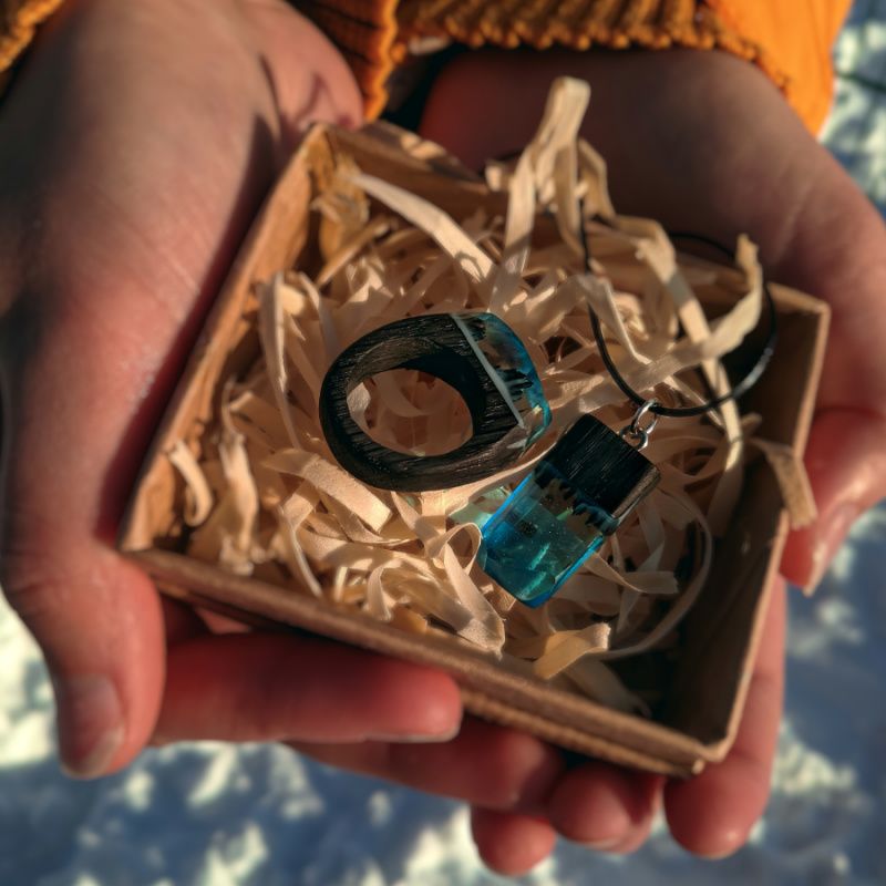 • Материалы: Украшения сделаны из эпоксидной смолы и мореного дуба