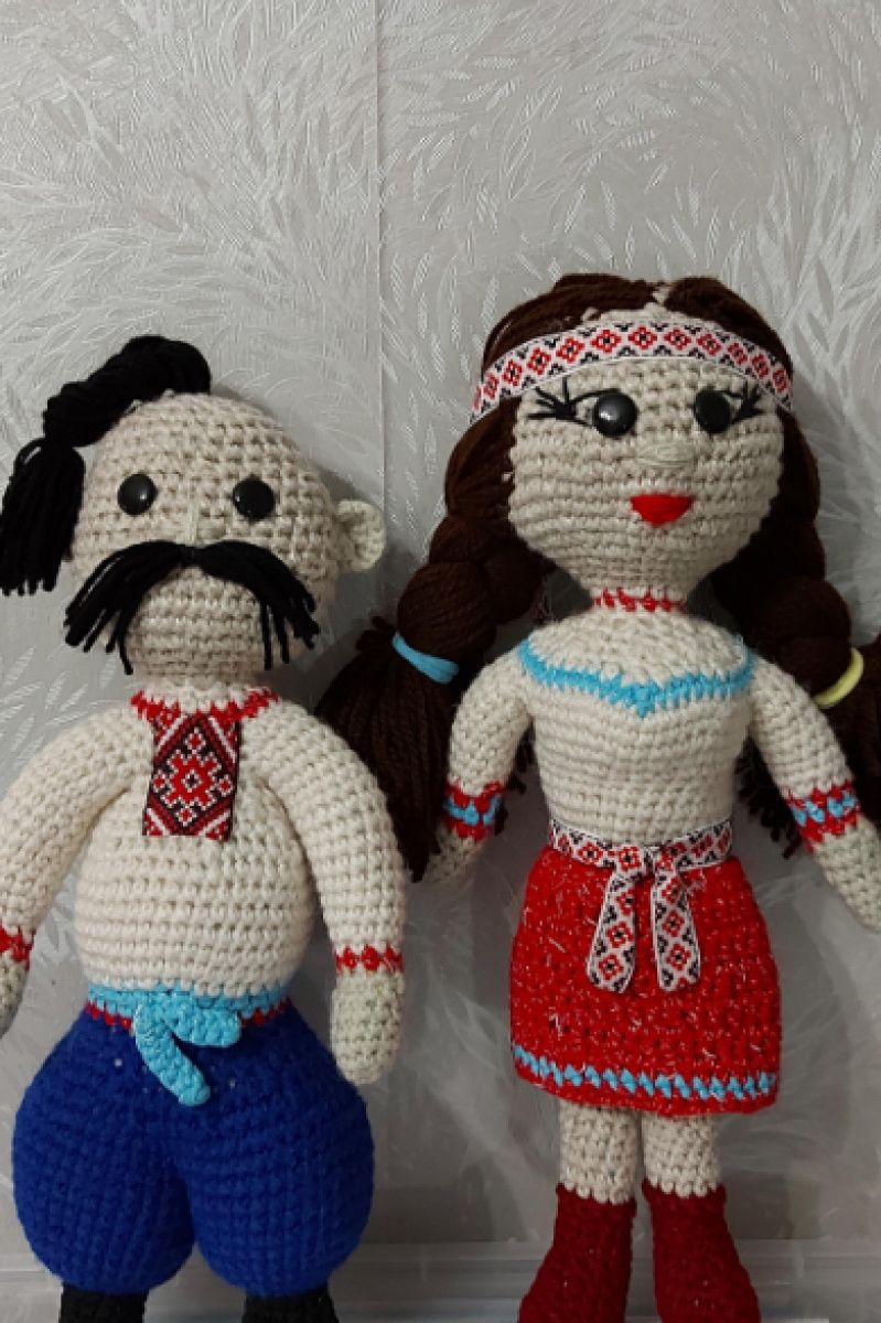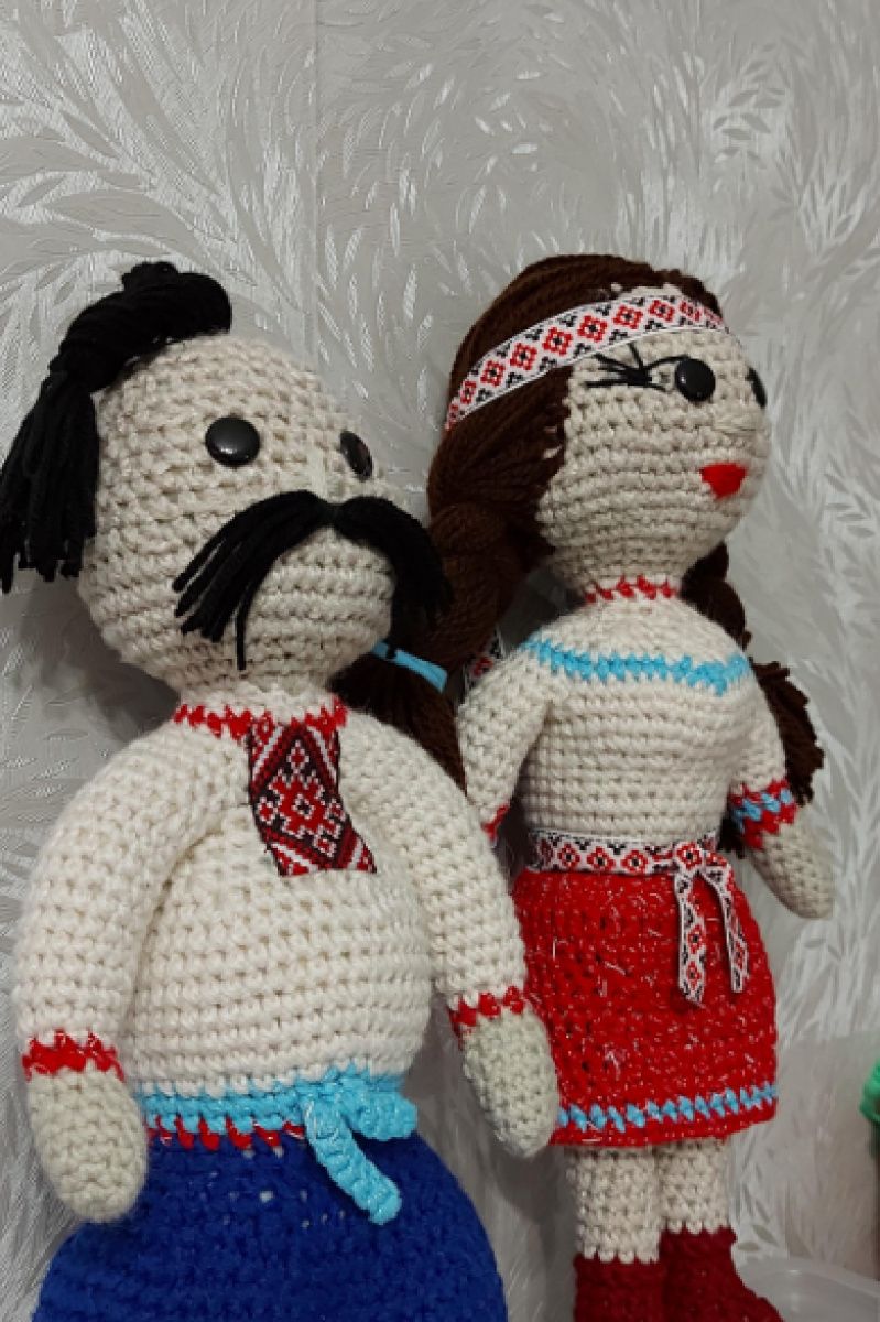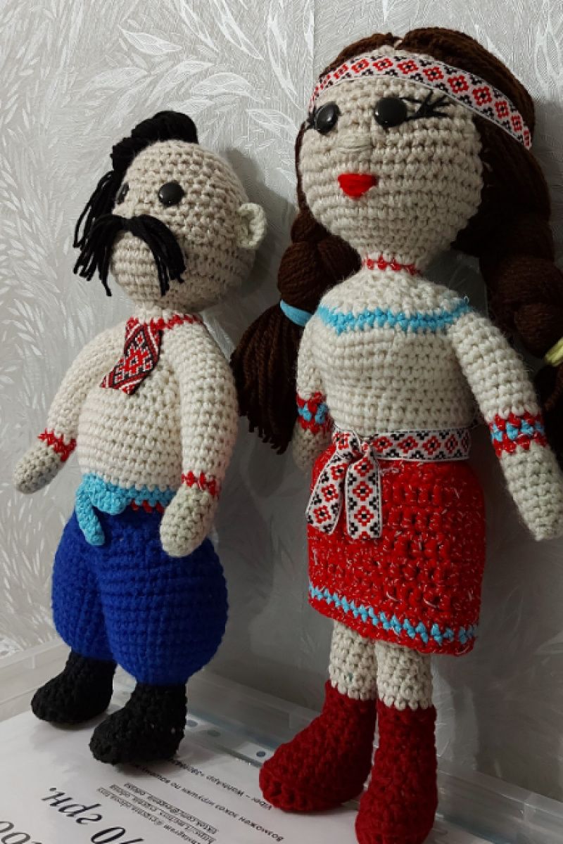 Украинская кукла - пара в национальном костюме. связанные крючком. возможен заказ других кукол разных народов, а также другие игрушки и украшения интерьера. парень- 350грн. девочка 400. Цена оговаривается.