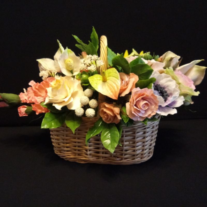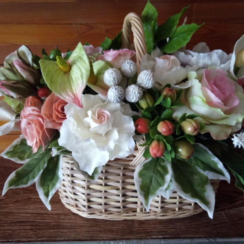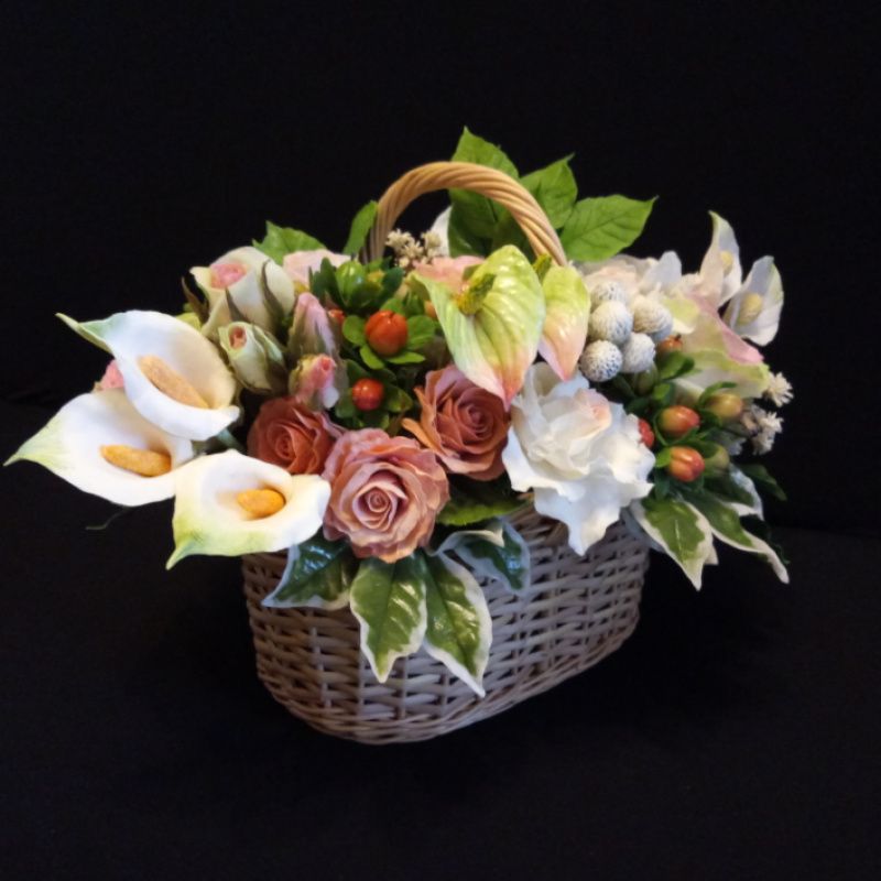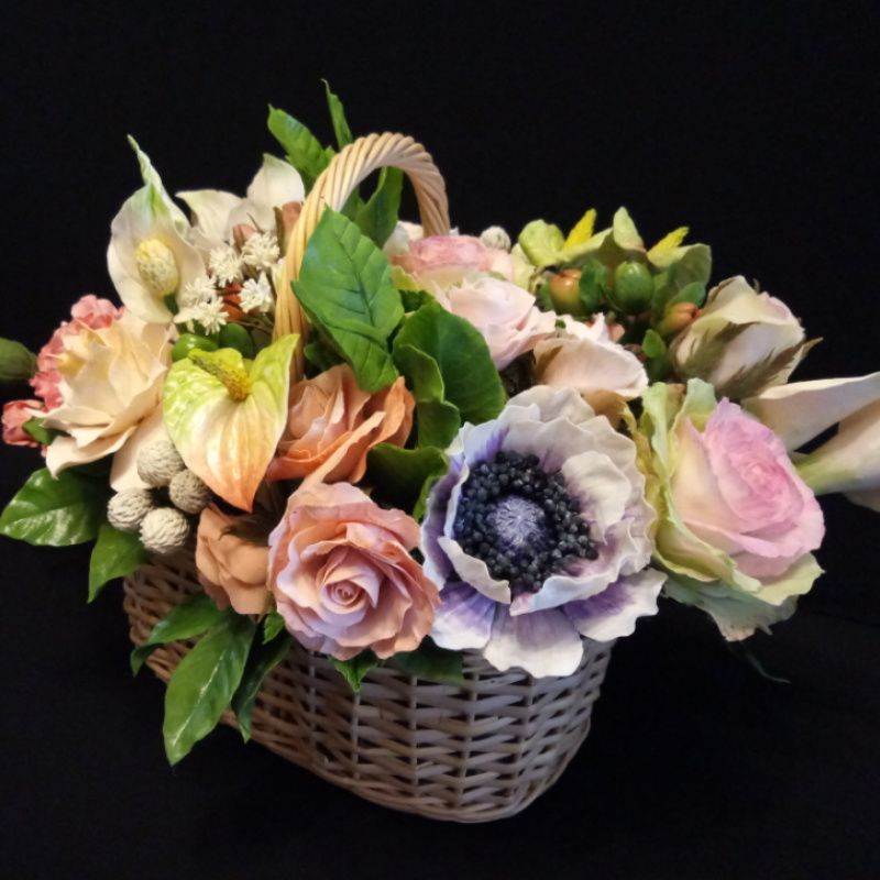 Букет цветов выполнен из холодного фарфора (полимерная глина). Очень сочные цвета этих, никогда не увядающих цветов, прекрасно дополнит любой интерьер, придав ему особый шарм и уют. Украсит столик, комод, прикроватную тумбочку или подоконник.