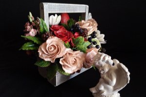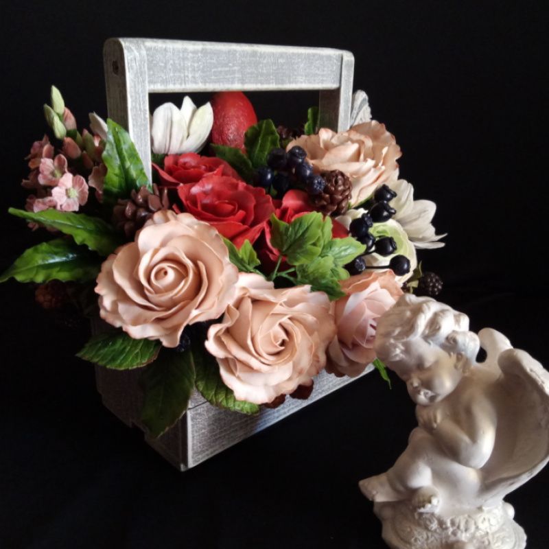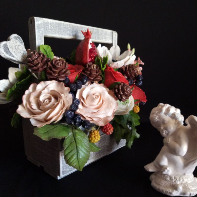 Букет цветов выполнен из холодного фарфора (полимерная глина). Очень сочные цвета этих, никогда не увядающих цветов, прекрасно дополнит любой интерьер, придав ему особый шарм и уют. Украсит столик, комод, прикроватную тумбочку или подоконник.