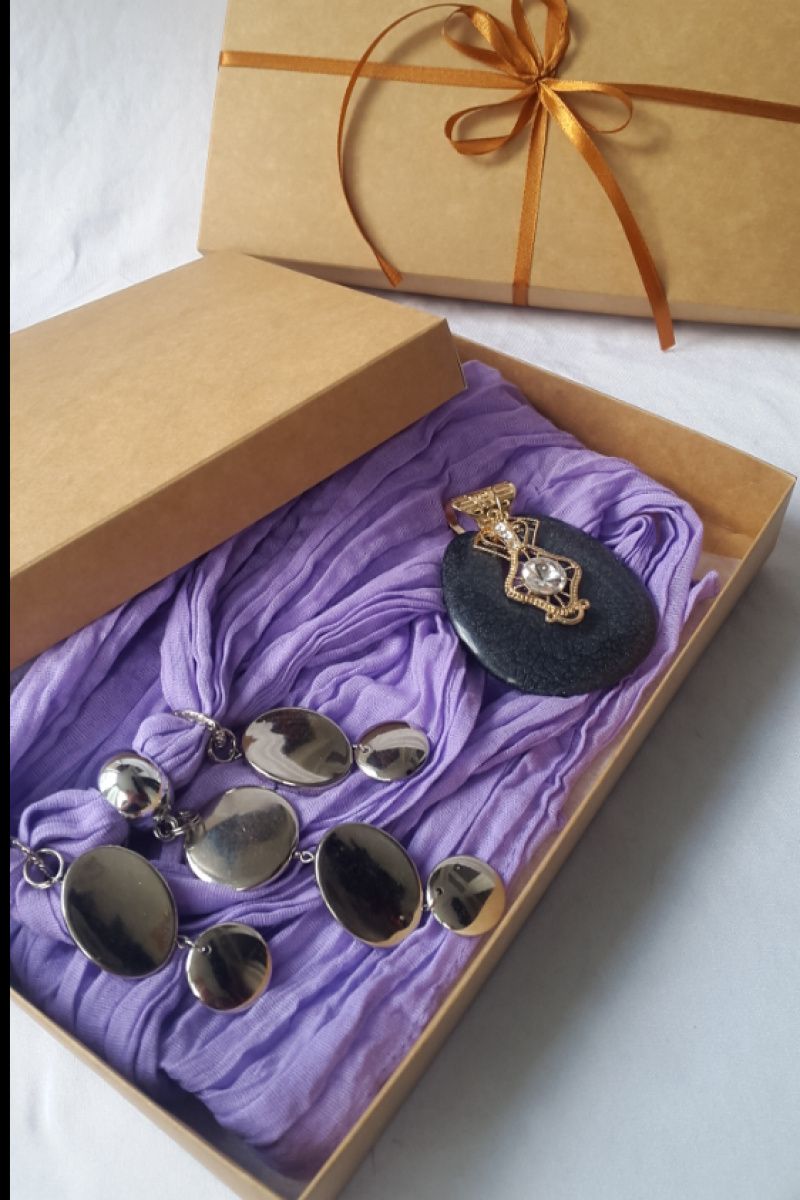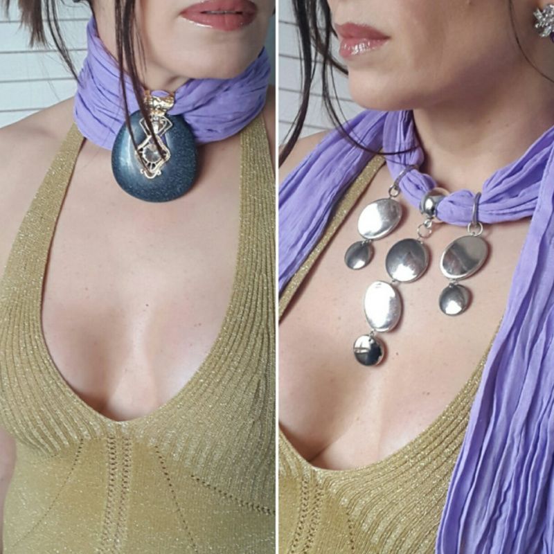 Сиреневый шарф - колье. Один шарф 2 кулона.