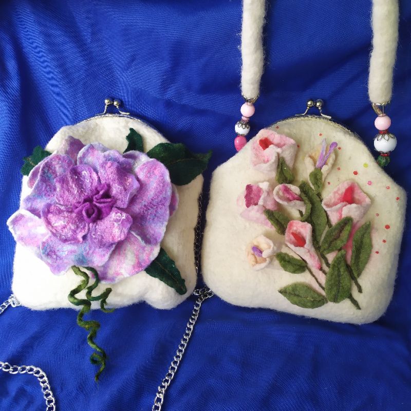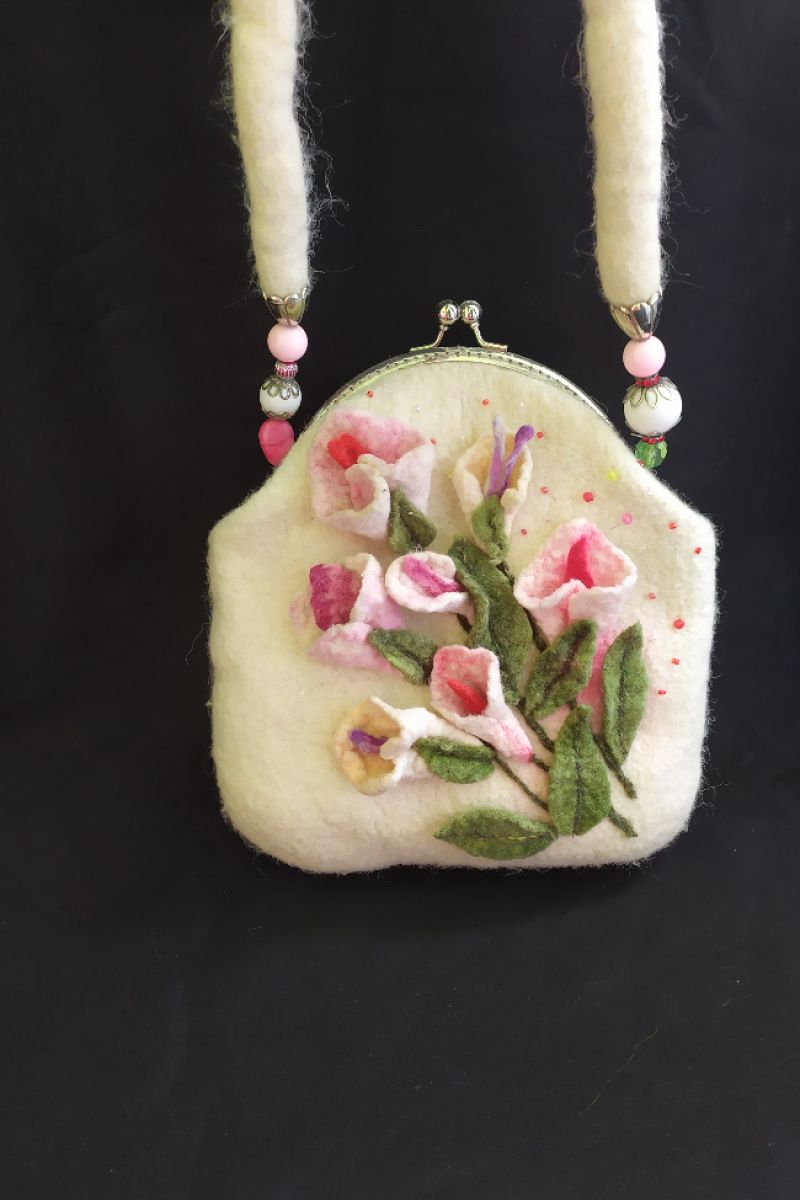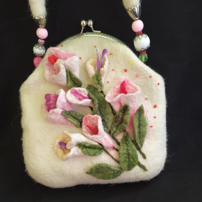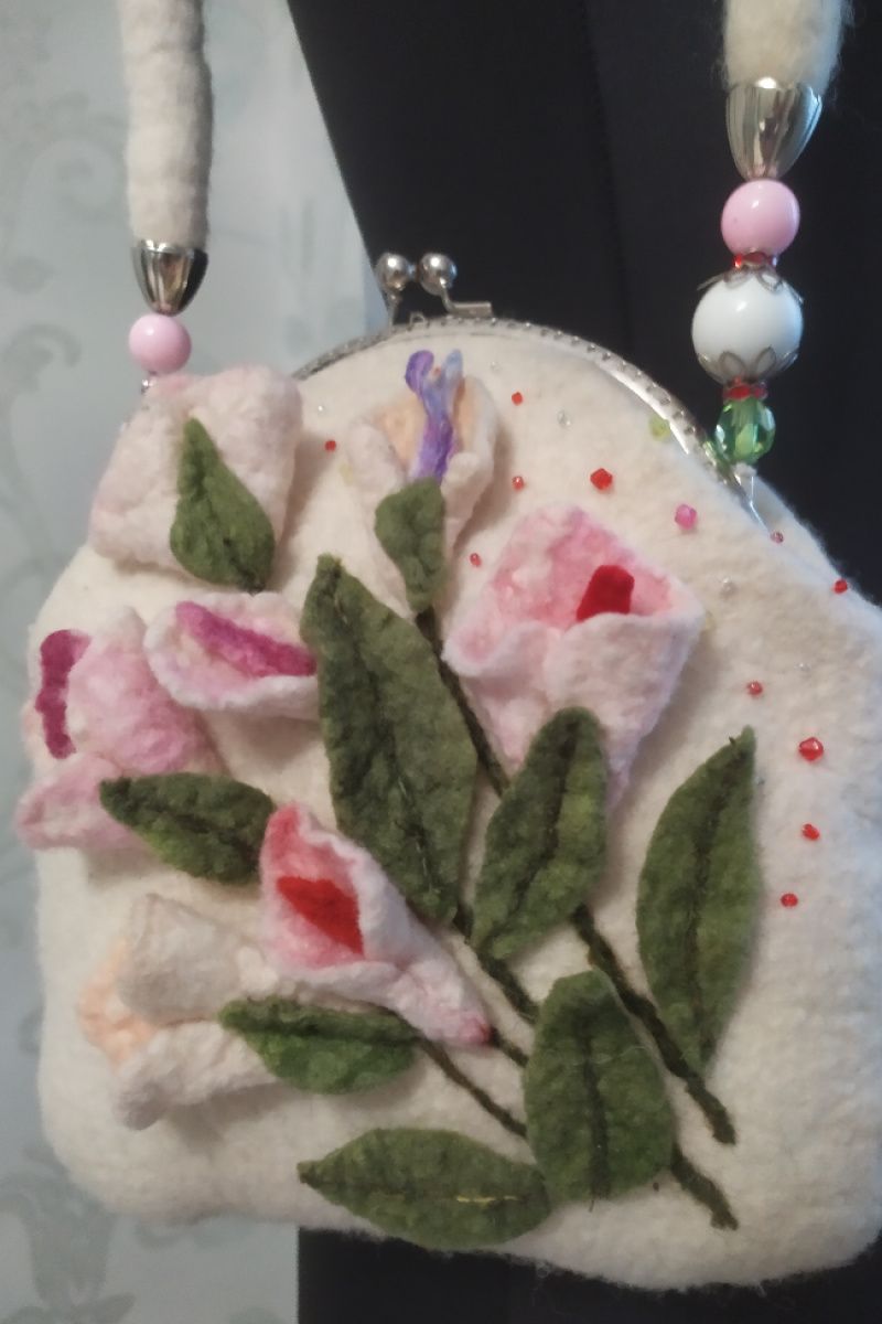 Валяная сумочка,выполнена из шерсти мериноса с добавлением шелковых и вискозных волокон.