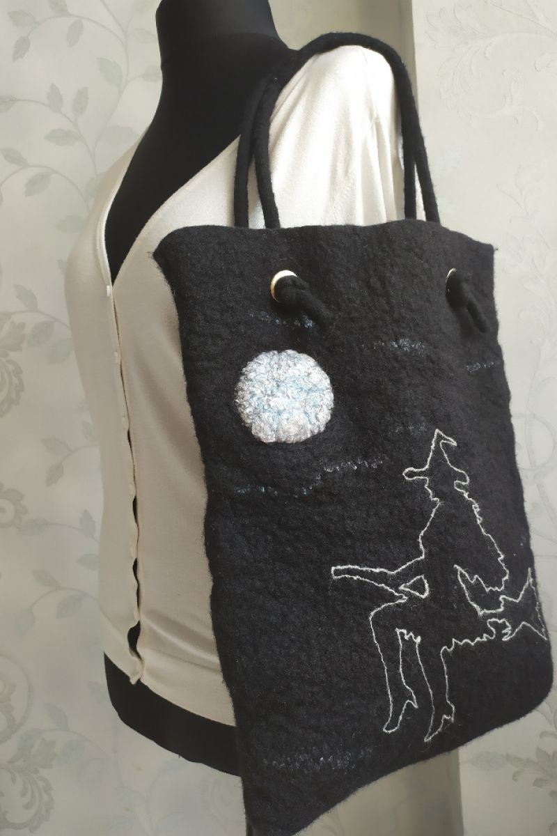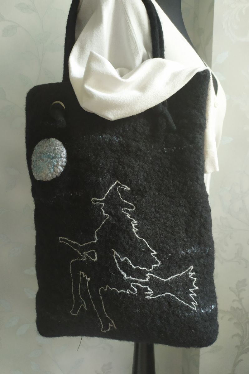 Сумка свалена вручную из шерсти в технике мокрого валяния.