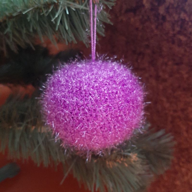 Вязаный шар на елку Сверкает при огне гирлянд Окружность 24,5 см Возможен повтор в другом цвете