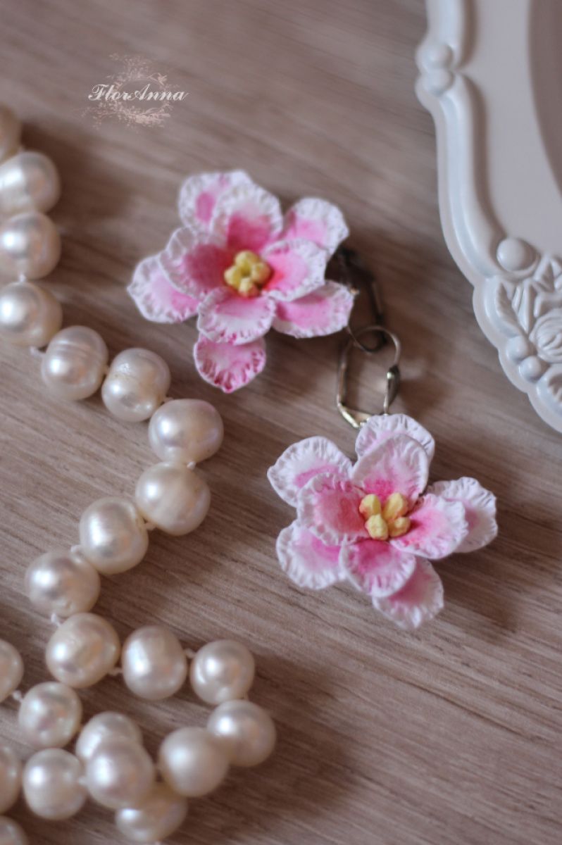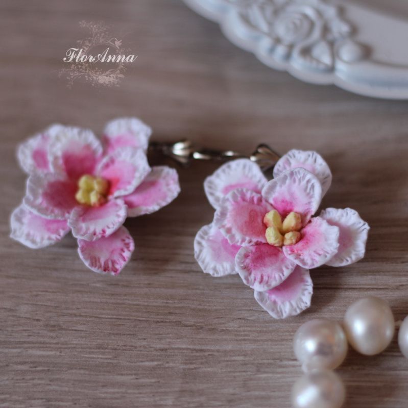 Нежные и воздушные серьги с розовыми фиалочками станут оригинальным дополнением в образе.
