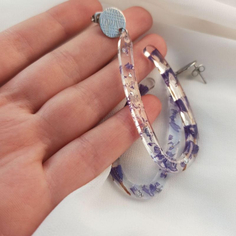 Большие серёжки с цветами сухоцвета для яркого образа.