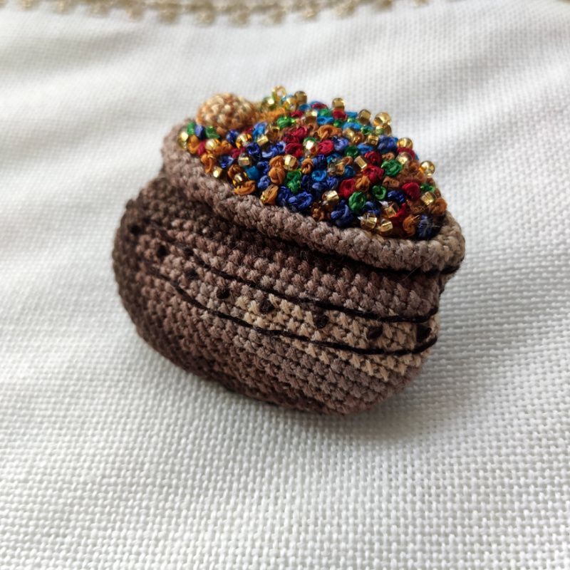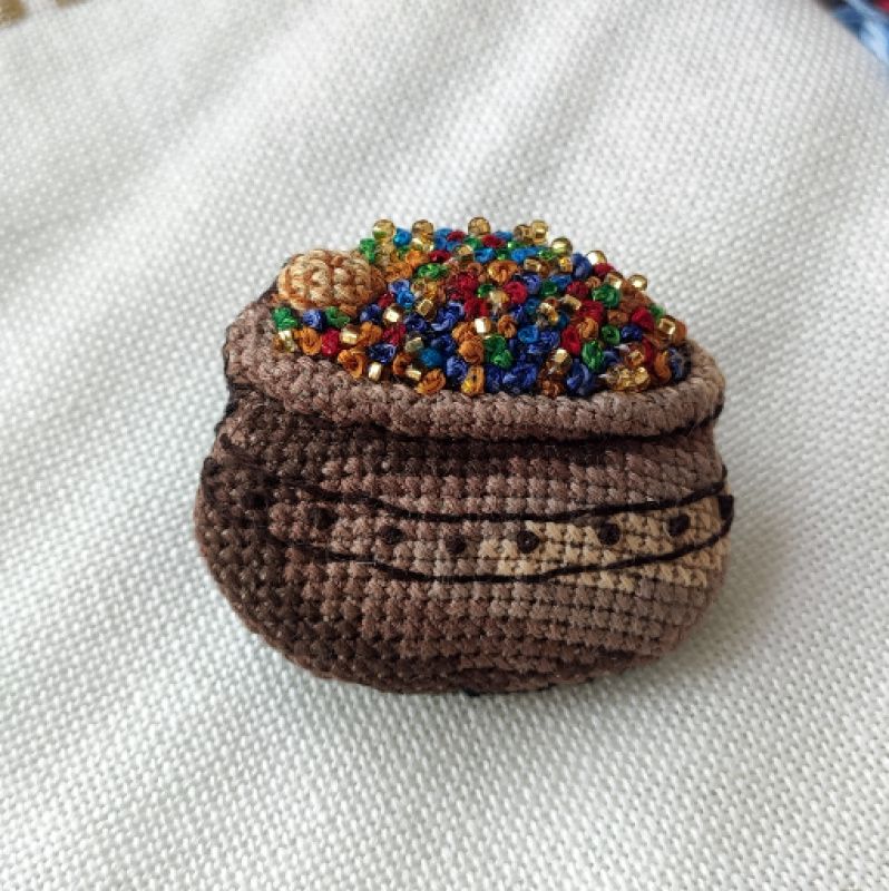 Выполнена в авторском дизайне, в объемном технике (рыхлая на ощупь) вышитая крестиком, дополненная фактурными стежками и бисером. Вышитая хлопчатобумажными мулине, металлизированными и шелковыми нитями, поэтому некоторые элементы сверкают. Сверхлегкая, поэтому можно носить на легких тканях и в повседневной образе. Крепится на качественную японскую металлическую застежку. Сделана в единственном экземпляре. Размер броши по крайним точкам составляет 5 * 4,5 см