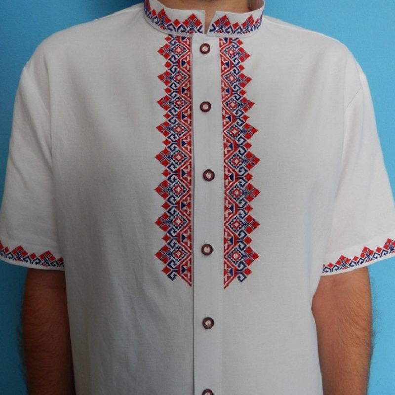 В наличии мужская вышиванка ручной работы. Сделана в одном экземпляре из натуральных материалов: 100% хлопок и белое домотканое полотно. Подойдет на размер 52-54, но смотрите замеры: ширина по груди 59-60 см, длина 74 см, рукав 27 см.
