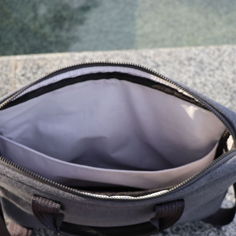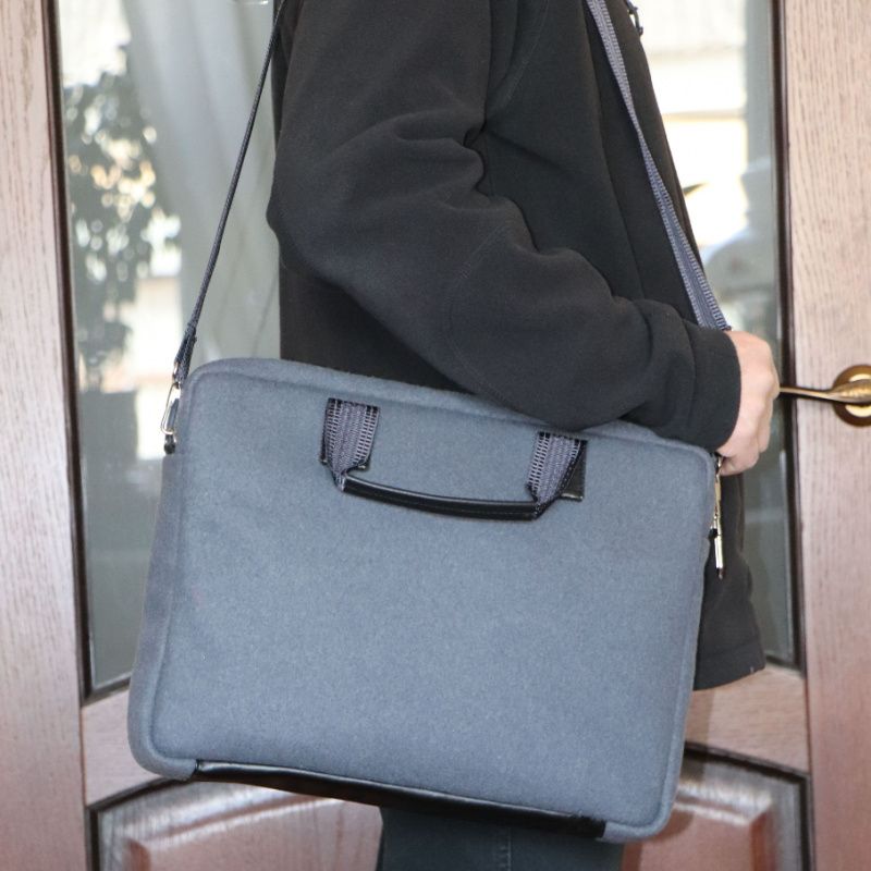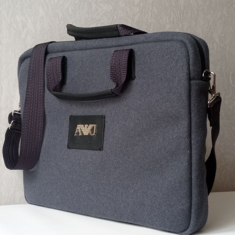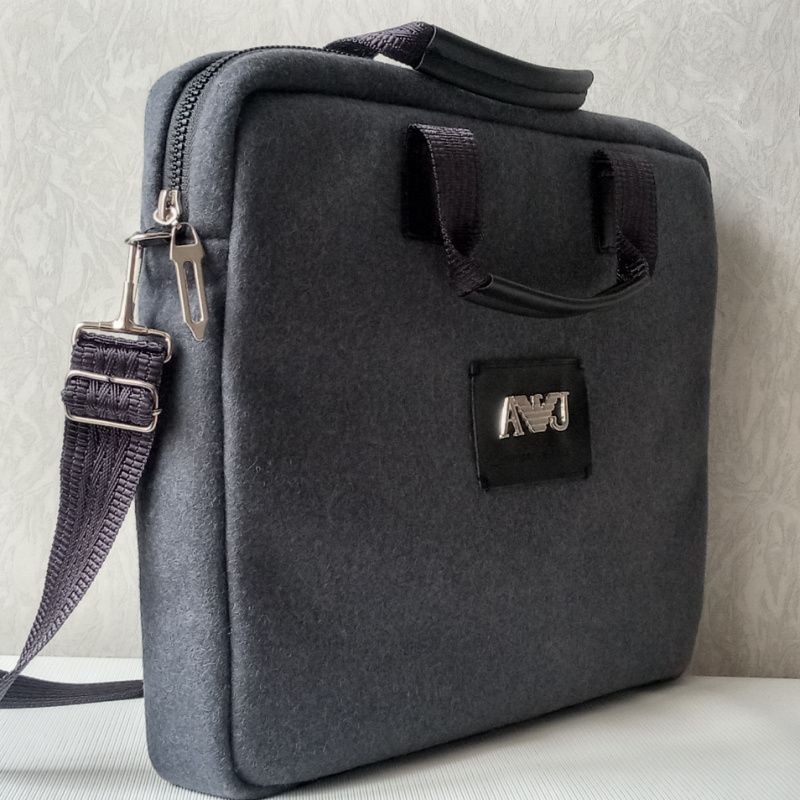 Сумка для ультрабука или планшета – авторская ручная работа. Изготовлен из чистошерстяного сукна цвета стали с текстильными ручками и ремнем, с отделкой черной экокожей. Сукно особенно плотное и прочное, устойчивое к неблагоприятным внешним факторам – дождю, снегу, возгоранию, химическим реактивам, прекрасно сохраняет первоначальную форму, приятную в руках. Гарантия качества. Для любителей эксклюзива. Подкладка – смесовая ткань из хлопка и полиэстра светло-серого цвета с отделением для документов и карманом с молнией. Сумка с противоударной прокладкой. Размеры: 37см х 28см х 4см, длина регулируемого ремня 150 см, высота ручек 13 см. Диагональ сумки 18".