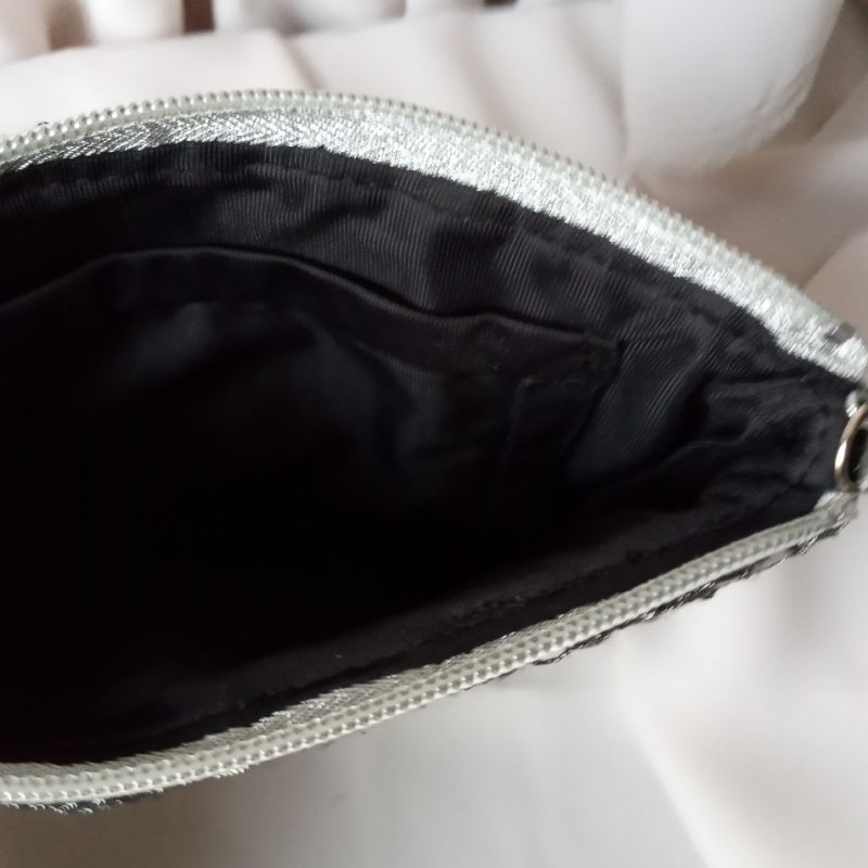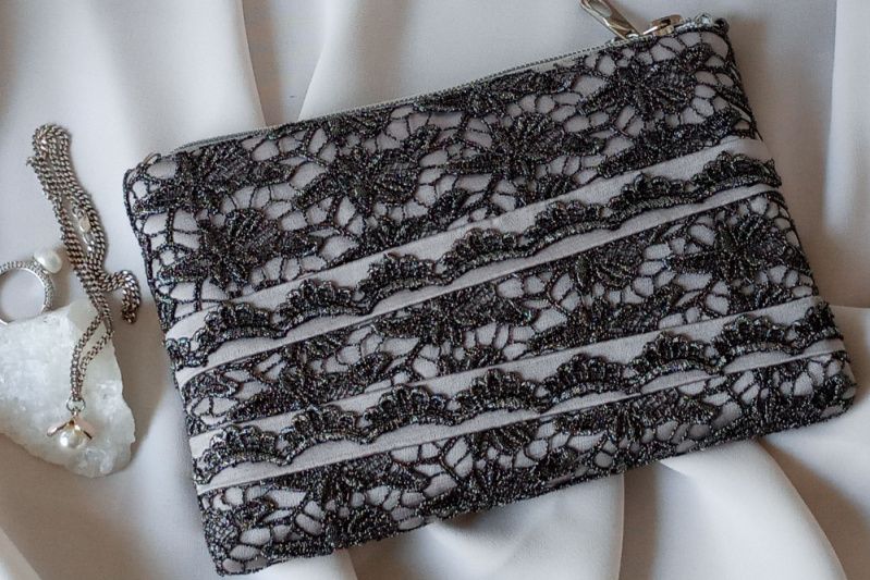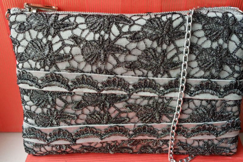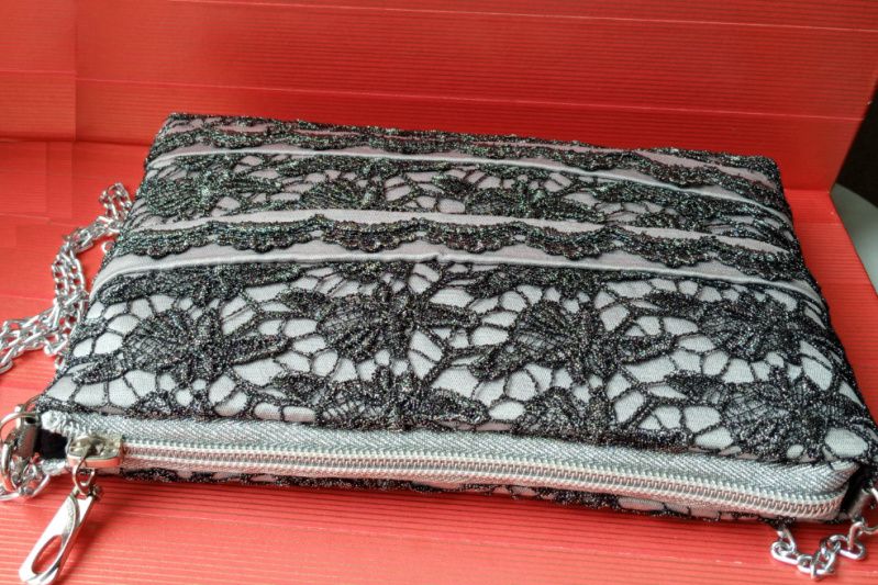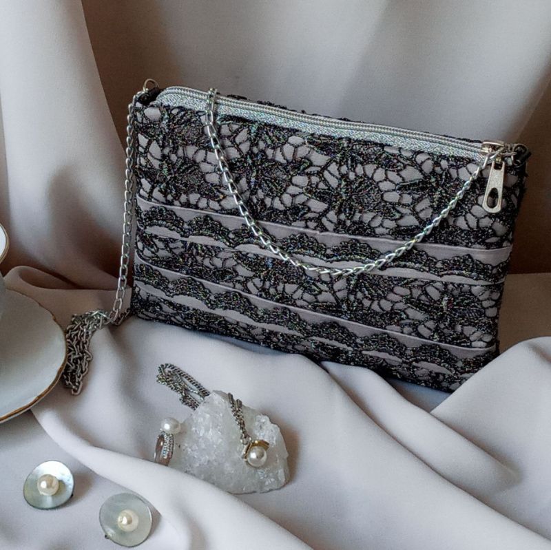 Авторская работа – сумочка для праздника серебристая гипюровая на цепочке. Черная подкладка с карманчиком. Изысканная сумочка подчеркнет элегантность вашего наряда, станет хорошим подарком. Размеры: 21х14х2 см. Длина цепочки 100 см.