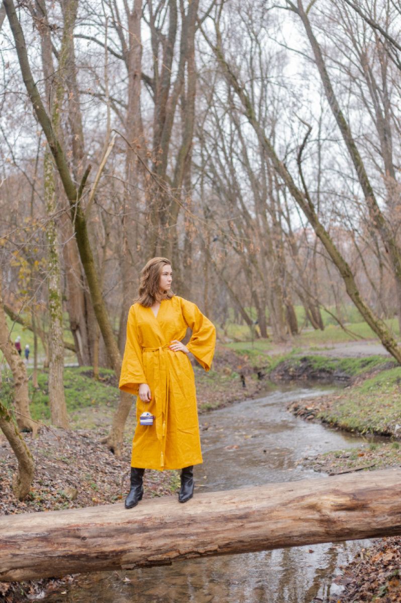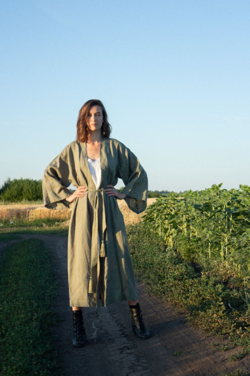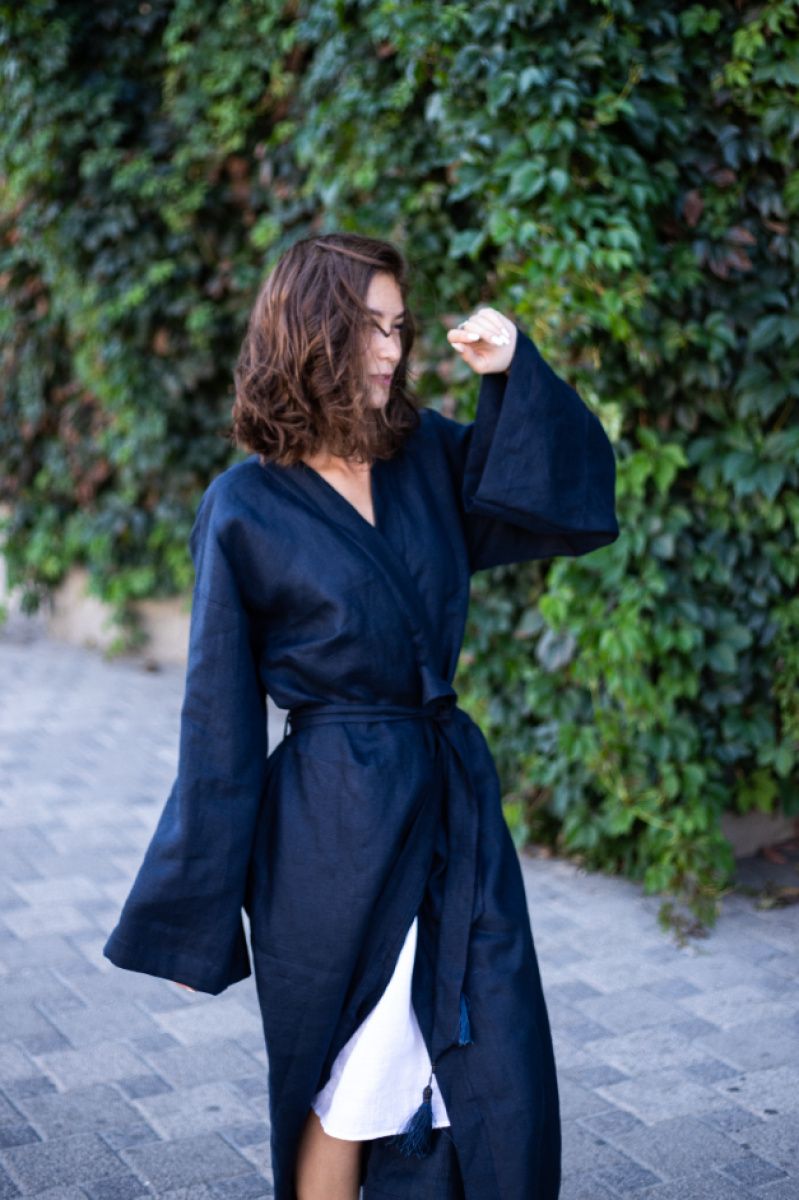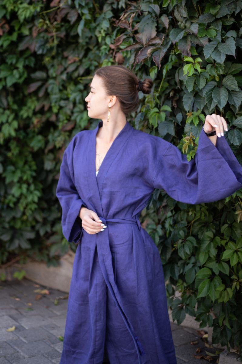 Кимоно длинные На запах, без пуговиц Материал 100% хлопок Длина 120 см Широкий рукав 3/4 Пояс в комплекте с декоративными кистями в тон (фурнитура может отличаться от фото в зависимости от тона изделий и наличии ассортимента) Помните пожалуйста, что льняные вещи по фасону оверсайз, потому лен не тянется и вам предстоит в нем комфортно при движениях. Также к вещам при пошиве добавлены несколько см на дальнейшую усадку. После стирки одежду садится и становится по размеру. Срок пошива 3-5 дней. Если заказ срочный, пожалуйста, укажите это в комментарии и мы сделаем все возможное для Вас!