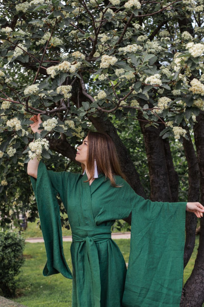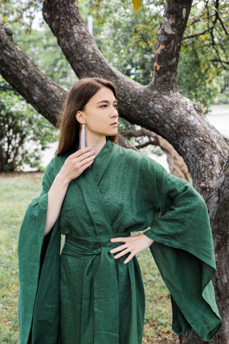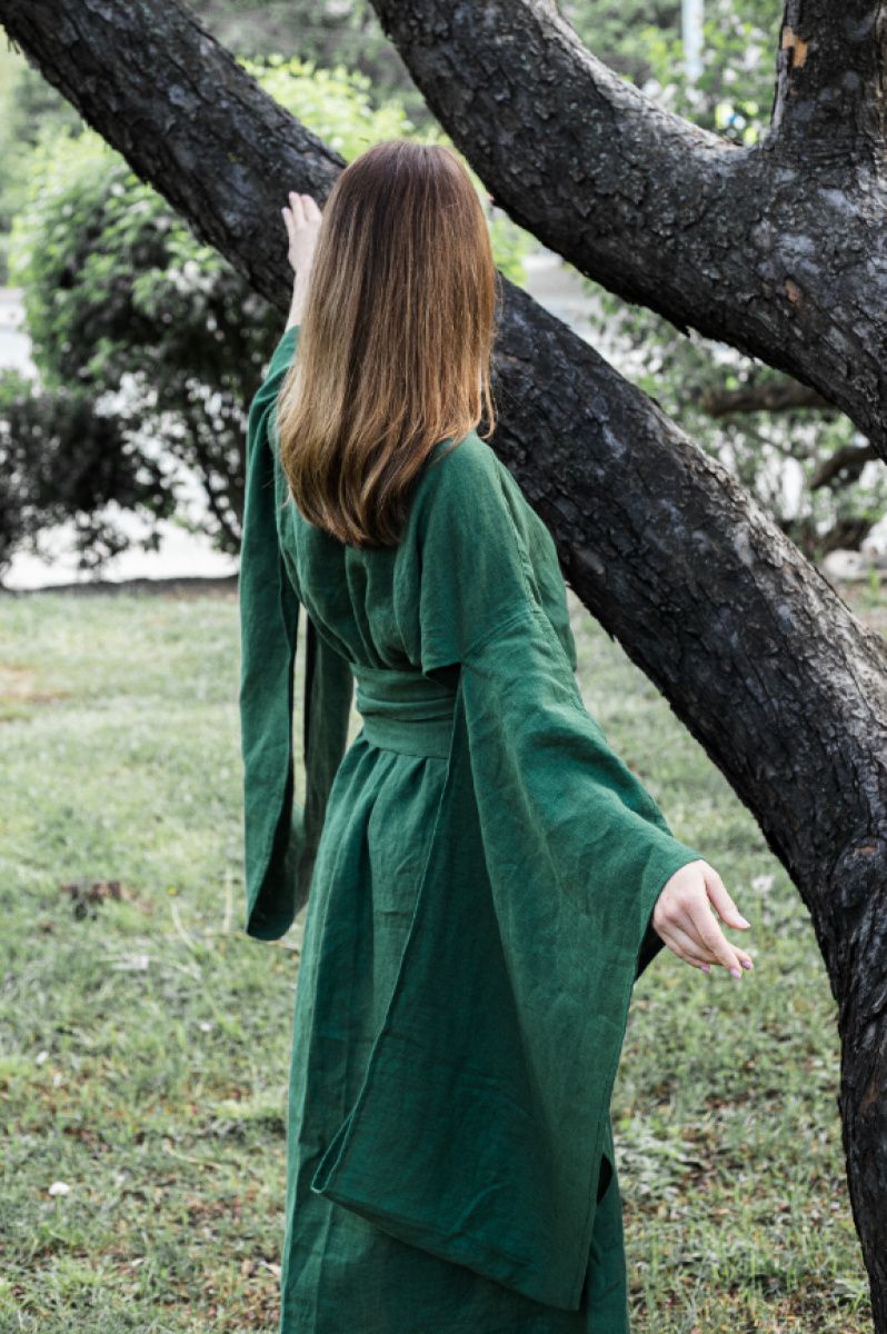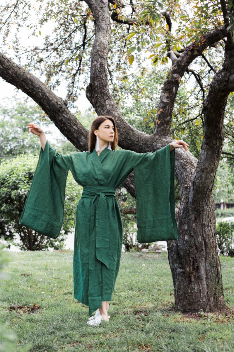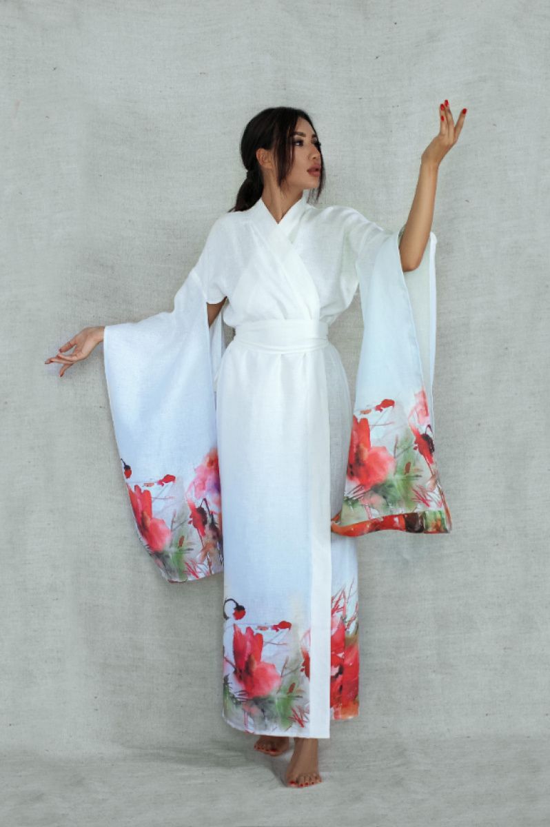 Кимоно в традиционном японском стиле Материал 100% хлопок На запах, внутри завязка для фиксации Длина 120 см Долгое отрезной рукав с разделительным элементом Широкий длинный пояс, завязывается два оборота Срок пошива 3-7 дней. Если Ваш заказ срочный, пожалуйста, укажите дату, до которой надо получить заказ в комментарии.