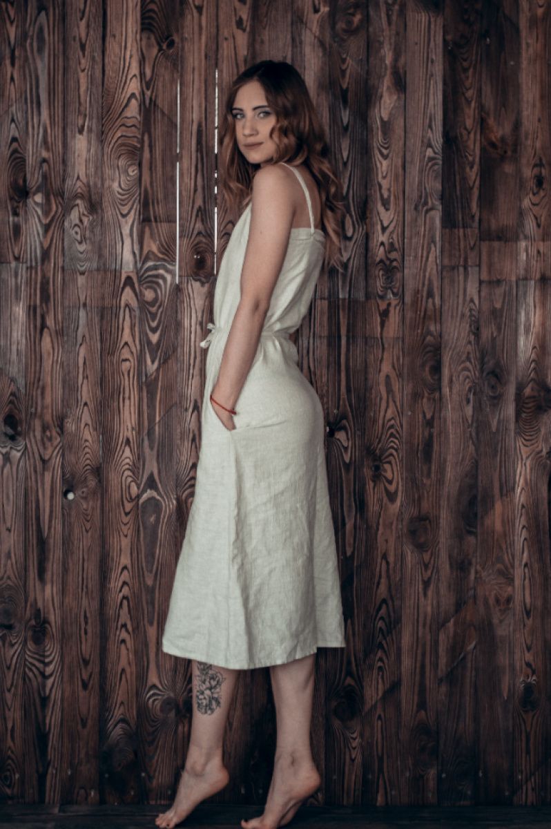 Сарафан Материал 100% хлопок На тонких брители, которые регулируются Длина 120 см Карманы по бокам Тонкий пояс в комплекте Помните пожалуйста, что льняные вещи по фасону оверсайз, потому лен не тянется и вам предстоит в нем комфортно при движениях. Также к вещам при пошиве добавлены несколько см на дальнейшую усадку. После стирки одежду садится и становится по размеру. Срок пошива 3-5 дней. Если заказ срочный, пожалуйста, укажите это в комментарии и мы сделаем все возможное для Вас!