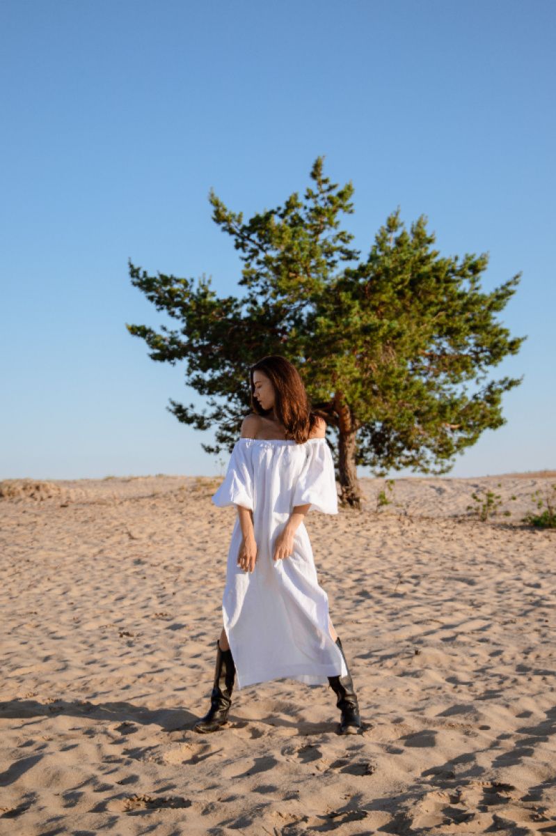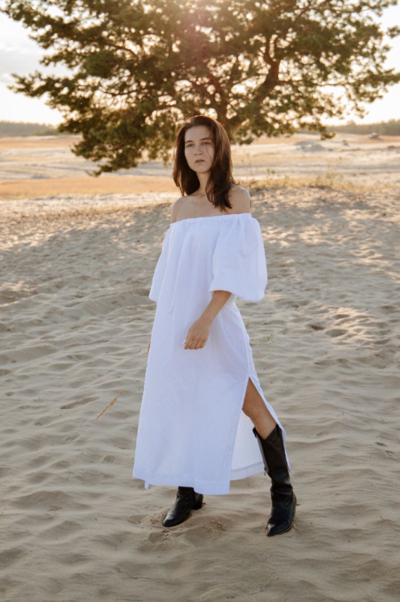 Платье меди с широкими рукавами Длина 110 см Сверху держится за счет тонкой резинки Объединение разъемные рукава "фонариком" снизу также на резинке Длина рукава 43 см Материал: 60% хлопок, 40% лен Текстура неоднородна, в мелкую точку Цвета на фото : белый, пристальное роза, красный. Помните пожалуйста, что льняные вещи по фасону оверсайз, потому лен не тянется и вам предстоит в нем комфортно при движениях. Также к вещам при пошиве добавлены несколько см на дальнейшую усадку. После стирки одежду садится и становится по размеру. Срок пошива 3-5 дней. Если заказ срочный, пожалуйста, укажите это в комментарии и мы сделаем все возможное для Вас!