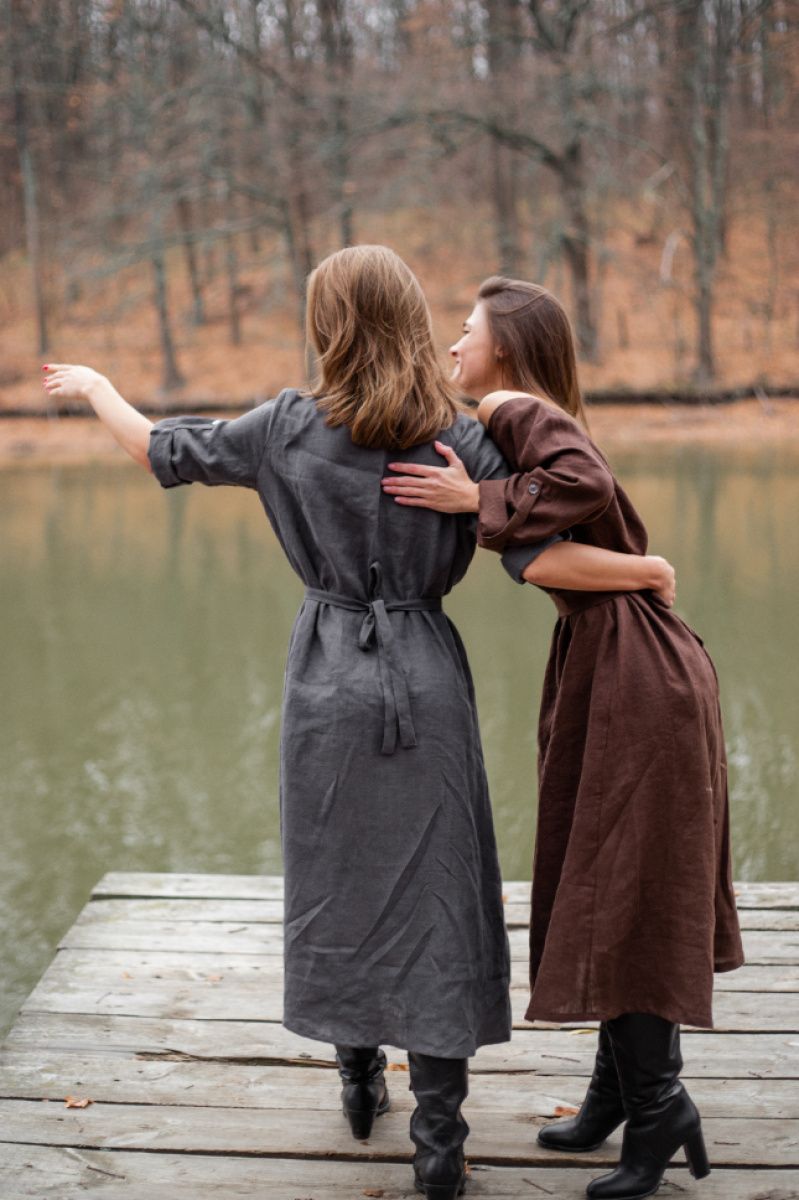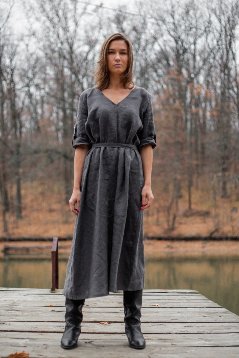 Сукня- трансформер Благодаря универсальному фасону без вытачек, платье можно носить двумя сторонами. Одна сторона с V-образным вырезом, можно надевать как на перед, так и на спину. Вторая-с классическим овальным вырезом. Длинный рукав, можно подкатывать под ¾, фиксируется пуговицей и шлейкой Длина миди-120 см Широкий фасон от груди, пояс в комплекте Материал: 100% смягчения лен Покупая одно платье, вы получаете аж 4 варианта: - широкая без пояса с вырезом попореду - широкая без пояса с полуоткрытой спинкой - с поясом на талии с вырезом попореду - с поясом на талии с полуоткрытой спинкой Идеально подойдет тем, кто любит оверсайз и беременным женщинам на любом мясяц Срок пошива 3-7 дней. Если Ваш заказ срочный, пожалуйста, укажите дату, до которой надо получить заказ в комментарии.