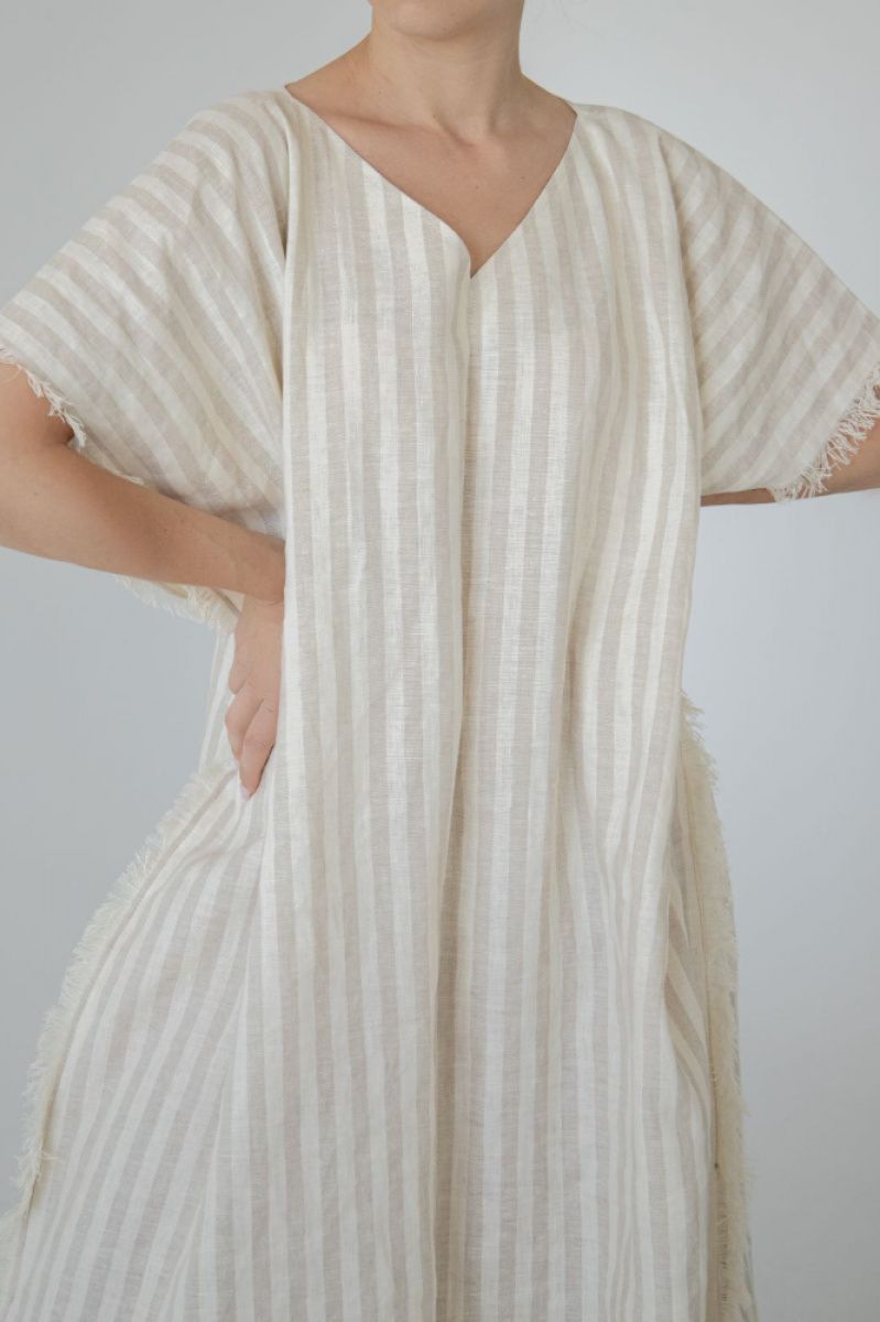 Свободная и широкая платье меди в полоску Универсальность фасона позволяет носить ии дома, на пляже, на резорте или по городу, добавив аксессуаров. Материал 100% хлопок Цвет: бежевый в полоску Длина 120 см Прямая по крою, канатный пояс в комплекте V-образный вырез, широкий рукав Необработанные декоративные края по бокам и снизу, просроченные, чтобы лен дальше не распускался Разрезы по бокам 30 см Срок пошива 3 -7 дней. Если Ваш заказ срочный, пожалуйста, укажите дату, до которой надо получить заказ в комментарии. Бренд: GNIZDO Помните пожалуйста, что льняные вещи по фасону оверсайз, потому лен не тянется и вам предстоит в нем комфортно при движениях. Также к вещам при пошиве добавлены несколько см на дальнейшую усадку. После стирки одежду садится и становится по размеру. Срок пошива 3-5 дней. Если заказ срочный, пожалуйста, укажите это в комментарии и мы сделаем все возможное для Вас!