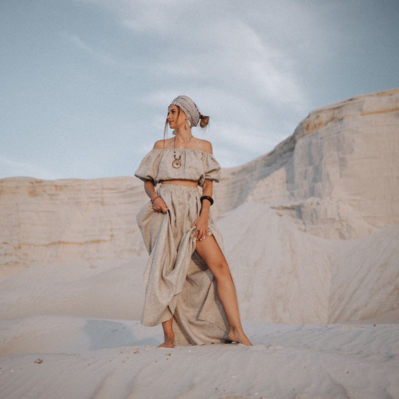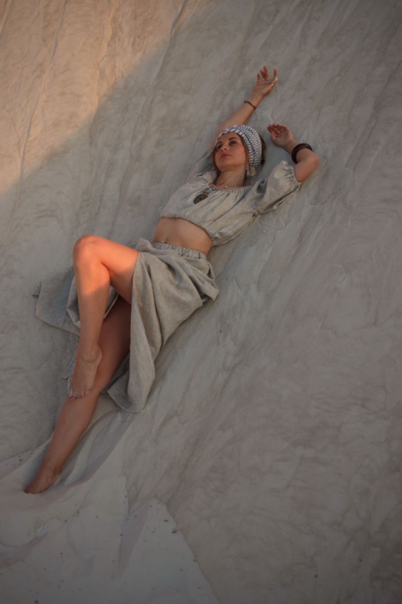 Топ на резинке по объединению емкими рукавами - фонариками Длина топа 30 см (в размерах XS, S, M) 35 см (в размерах L-XL) Длина рукава 30 см Юбка с боковыми разрезами на резинке (высокая посадка) Длина юбки впереди 105 см, сзади-115 см Высота разрезов 60 см Материал 100% хлопок Костюм выполнен в небеленой классическом цвете Помните пожалуйста, что льняные вещи по фасону оверсайз, потому лен не тянется и вам предстоит в нем комфортно при движениях. Также к вещам при пошиве добавлены несколько см на дальнейшую усадку. После стирки одежду садится и становится по размеру. Срок пошива 3-5 дней. Если заказ срочный, пожалуйста, укажите это в комментарии и мы сделаем все возможное для Вас!