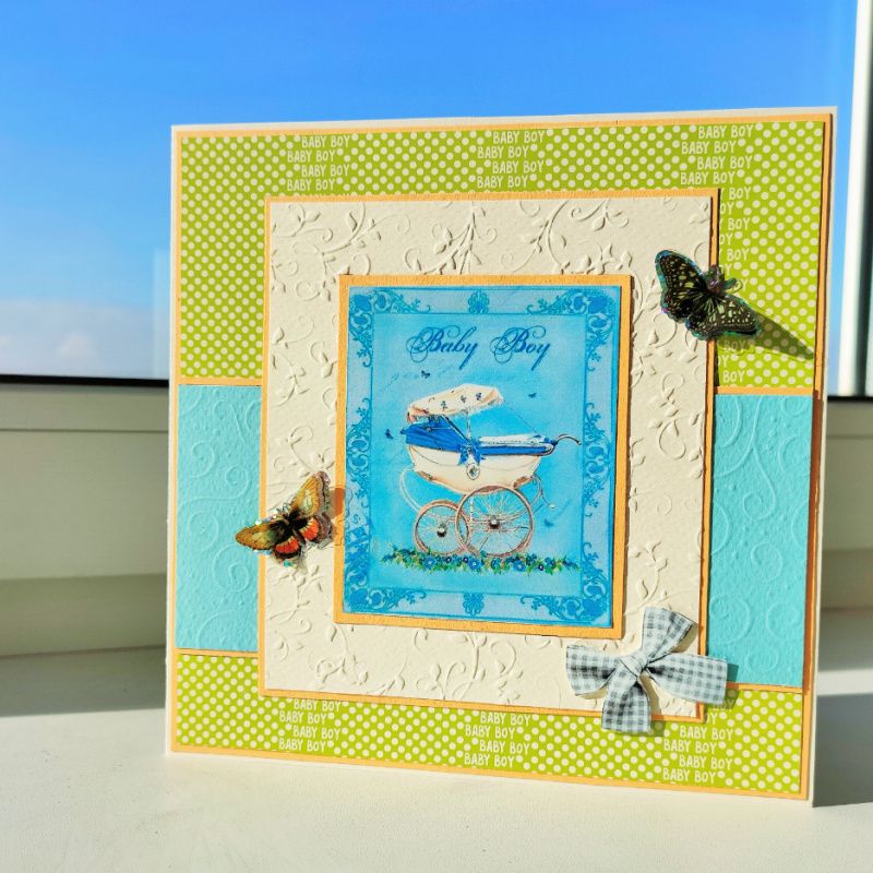 Открытка изготовлена из дизайнерской бумаги+ картона+ тисненой бумаги., украшена 3D бабочками