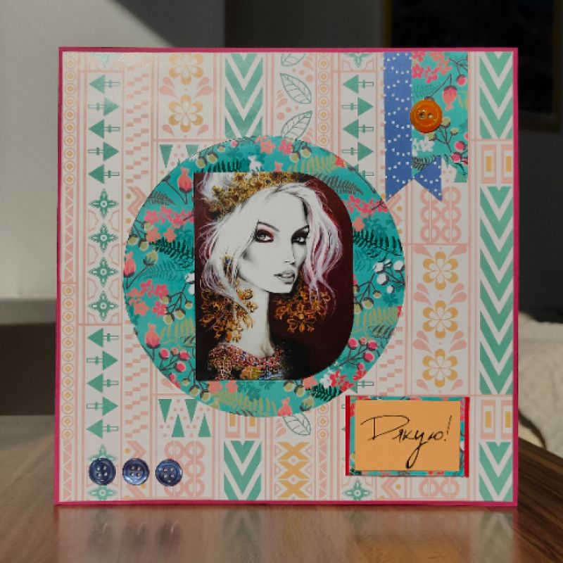 Открытка ручной работы, изготовлена из дизайнерского картона и дизайнерской бумаги, украшена пуговками