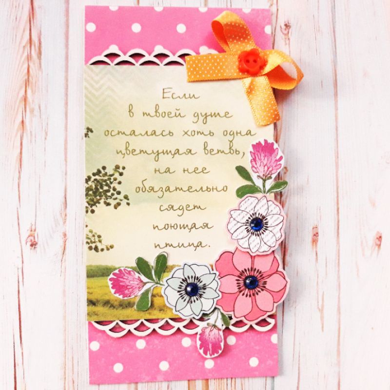 Открытка ручной работы,изготовлена из дизайнерского картона и дизайнерской бумаги, украшена деревянным бордюром-чипбордом