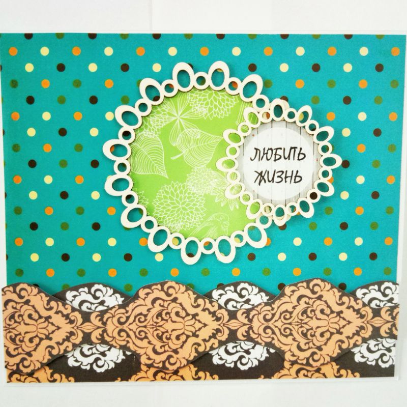Ручная работа ( дизайнерская бумага + дизайнерский картон) , украшена деревянными рамочками