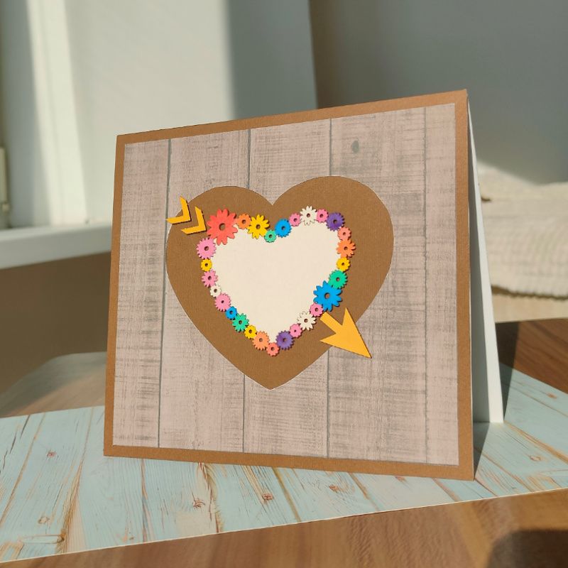 Открытка ручной работы, изготовлена из дизайнерского картона и дизайнерской бумаги, украшена деревянным чипбордом,