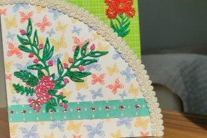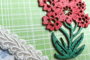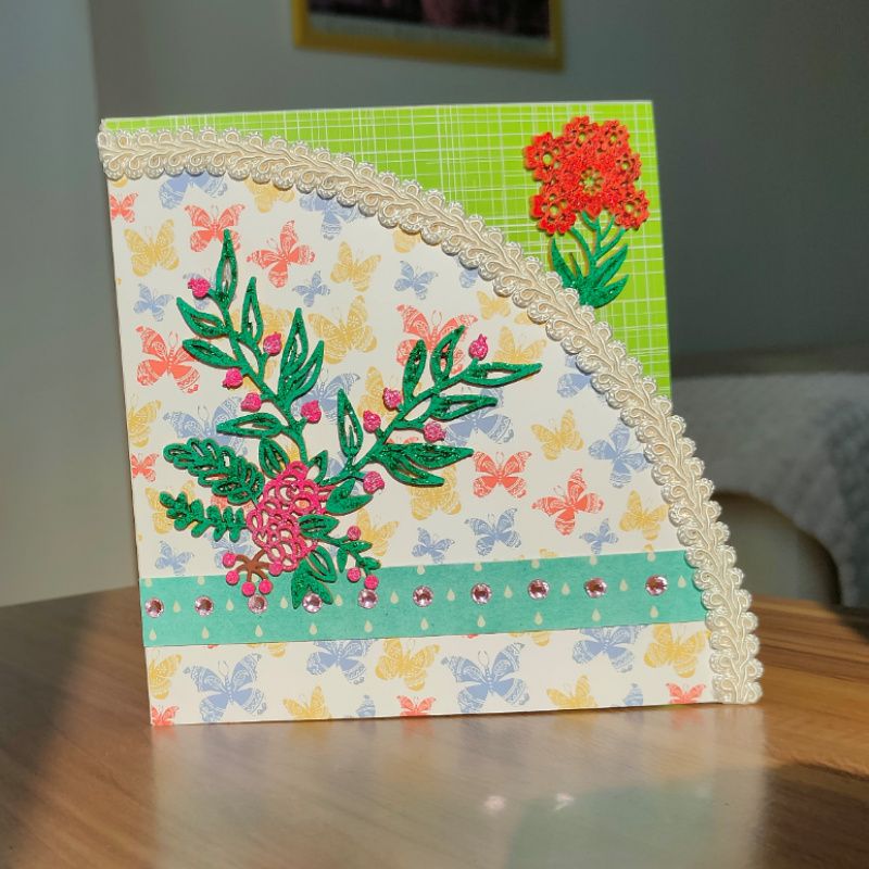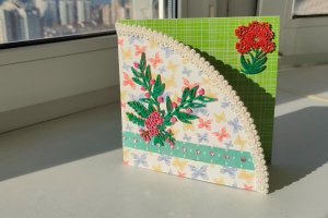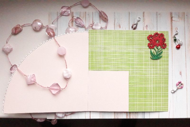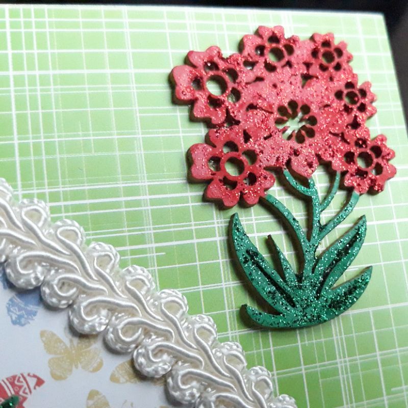 Открытка необычной формы с использованием деревянных раскрашенных элементов с ( блестят), страз и нежного кружева.
