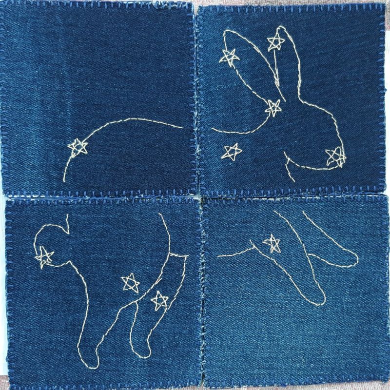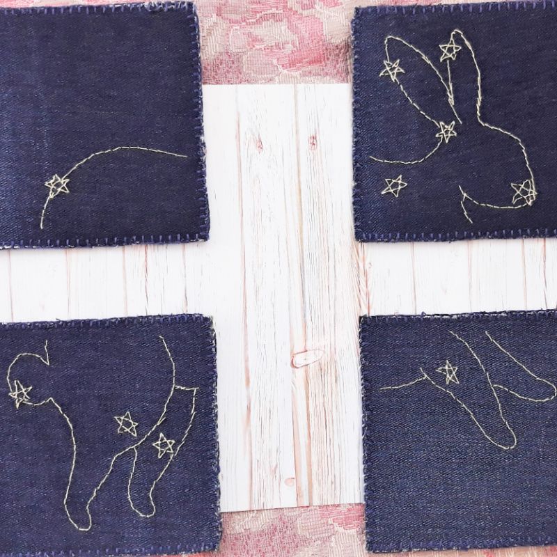 Комплект из 4 подставок ( квадратов 11 х 11 см) под горячее , который составляет собой единую композицию.