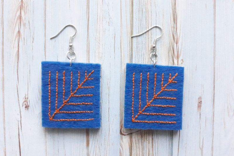Вышитые сережки : твердая основа + фетр с двух сторон