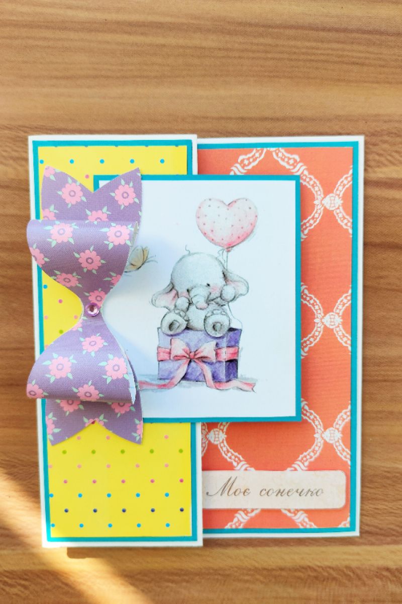 Открытка ручной работы, изготовлена из дизайнерского картона и дизайнерской бумаги, в форме буквы Z
