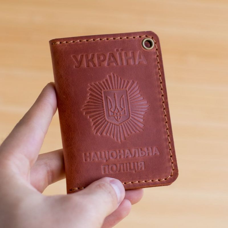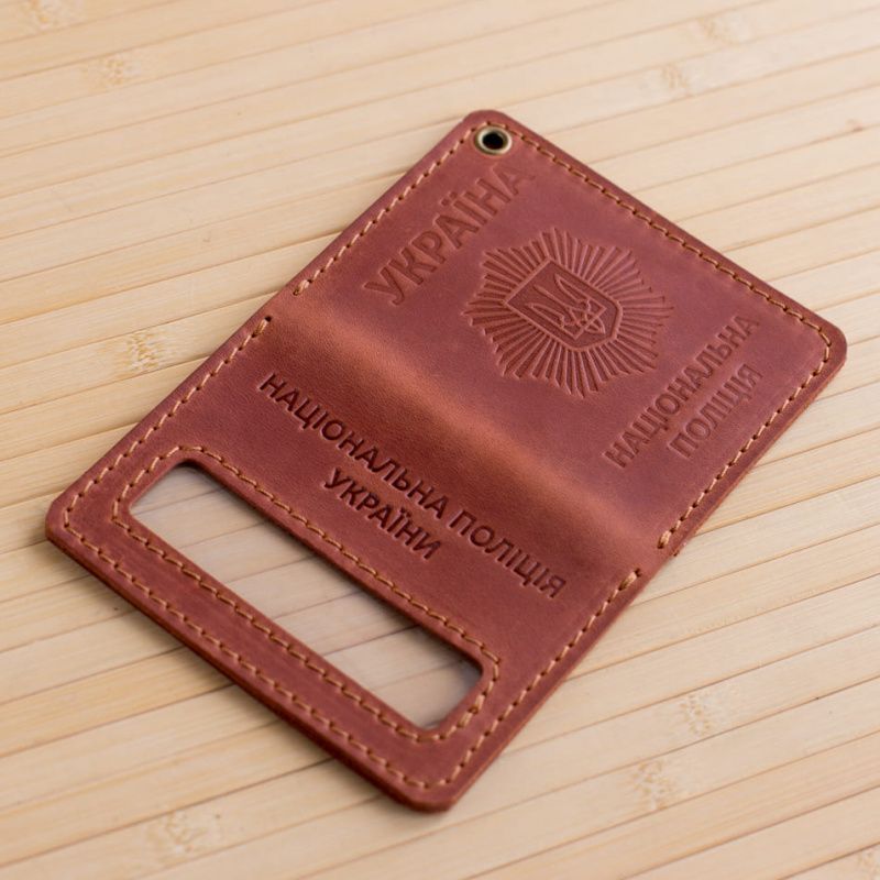 Обложка из кожи на удостоверение полиции коричневая