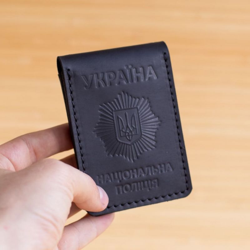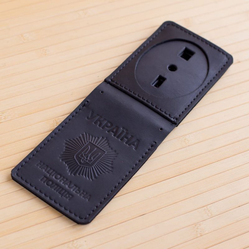 Обложка из кожи на удостоверение полиции с жетоном черная